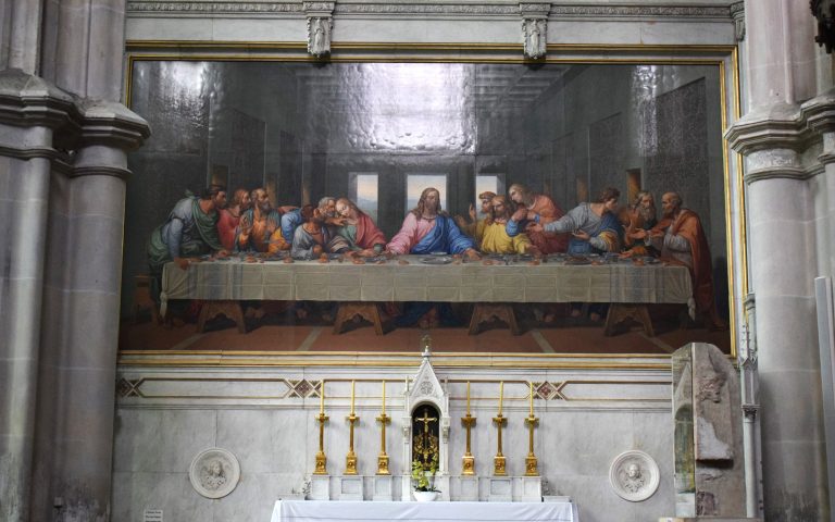 La grande fresque de la Cène, le dernier repas du Christ, peinte par Léonard de Vinci dans le réfectoire du couvent milanais Santa Maria delle …