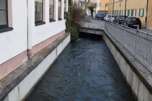 Un petit cours d’eau canalisé qui passe vers la Fuggerei et où l’on a bien envie de tremper les pieds quand il fait chaud.