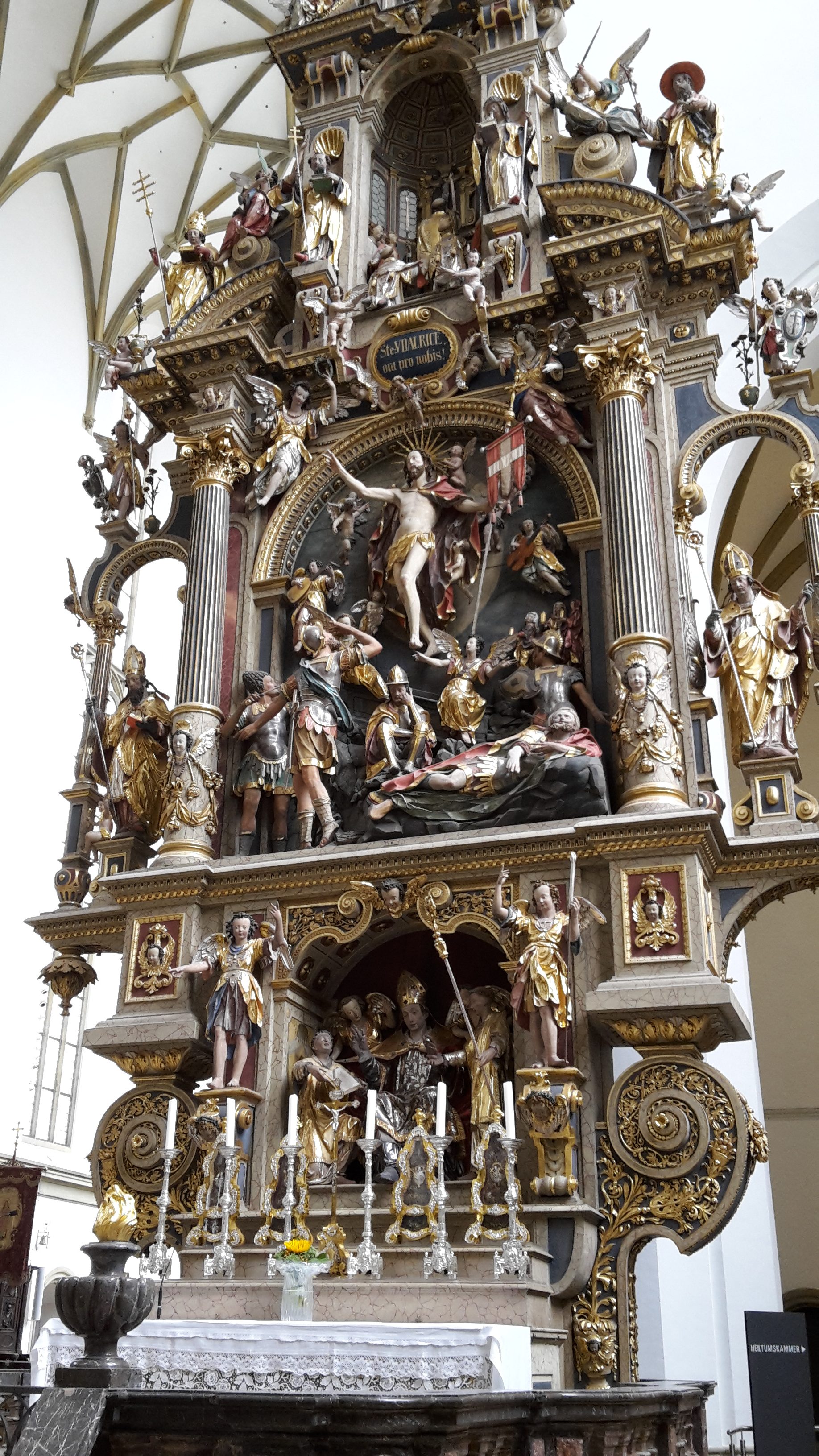 La Maximilianstraβe et toutes ses belles façades colorées dont certaines remontent à la Renaissance. Elle part de la majestueuse basilique Saint-Ulrich-et-Sainte-Afre, qui renferme entre autres un incroyable autel. Curiosité intéressante, une église évangélique, elle aussi dédiée à saint Ulrich, lui est adossée. Belle illustration des conflits religieux qui eurent lieu dans la ville. A l’autre bout de la Maximilianstraβe, on tombe sur l’hôtel de ville, un gigantesque bâtiment du début du XVIIème siècle de 57 mètres de haut. C’est un des plus grands édifices Renaissance situé au nord des Alpes. Il abrite une incroyable salle dorée de la même époque que l’on peut d’ailleurs visiter.