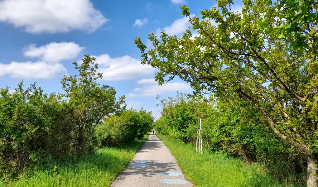 La boucle qui s’appelle « Rund um den Bisamberg » est fléchée tout le long dans les deux sens et fait 24 kilomètres de long. Elle comprend peu de montées et n’emprunte que des voies cyclables et des rues tranquilles. Elle convient ainsi très bien à une première sortie vélo et à une sortie en famille. On peut aussi faire le tour sans problème avec une remorque à vélo. Notez juste que l’itinéraire passe à quelques endroits par des rues pavées. Ca secoue un peu mais ça a son charme.