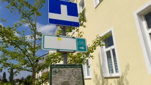 D’autres véloroutes mieux balisées empruntent toutefois le même parcours. Ainsi, de Langenzersdorf à la sortie de Hagenbrunn, juste avant d’emprunter une longue ligne droite à travers champs, on suit le « Weinviertel Donau Radtour ». A partir du grand carrefour de véloroutes situé un peu plus loin sur cette ligne droite, on suit l’EuroVelo 9 et la « Dampfross & Drahtesel Radroute » en direction de Stammersdorf. Juste après l’aire de pique-nique et son grand panneau en forme de roue de locomotive indiquant Rendezvousberg, on prend la rue sur la droite (Erbpostgasse).