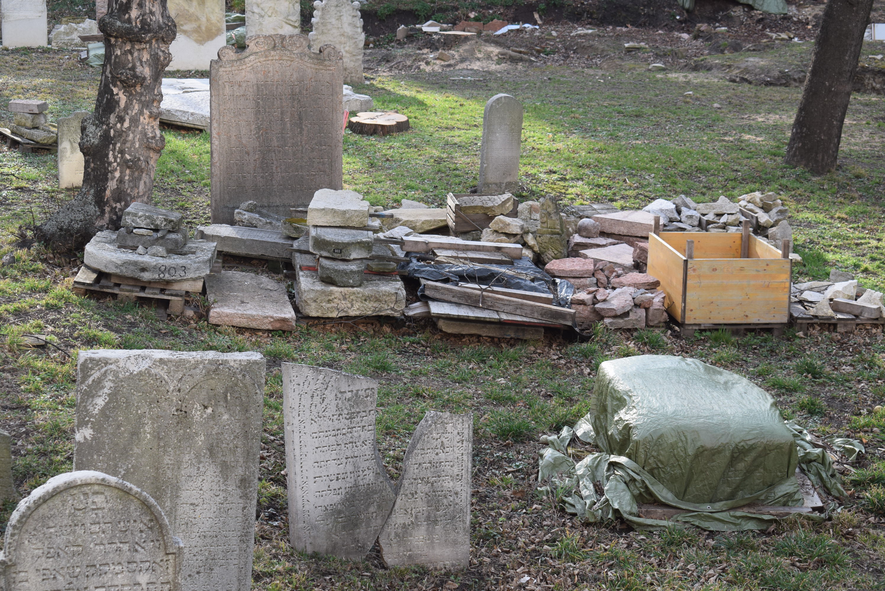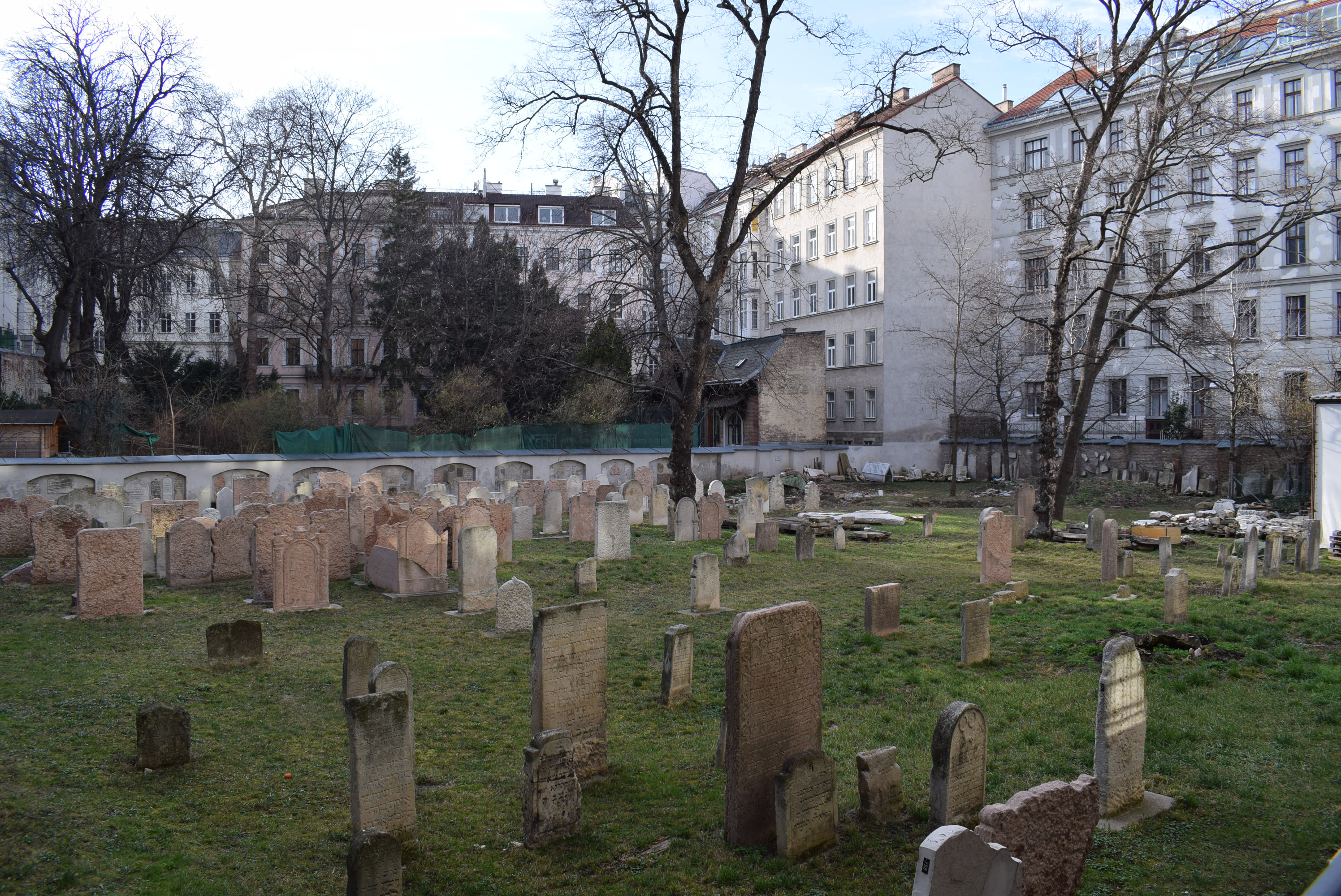 Les tombes les plus anciennes du cimetière juif de Rossau remontent au milieu du XVème siècle, et les plus récentes à la fin du XVIIIème siècle. En effet, l’empereur Joseph II, un des fils de Marie-Thérèse, avait entrepris de nombreuses réformes sanitaires, et parmi elles, celle de ne plus utiliser les cimetières se trouvant à l’intérieur de la ville (aujourd’hui du Gürtel), règle qui devait s’appliquer dans tout l’empire. Le démantèlement de cimetières étant interdit dans la religion juive, il resta en place. Toutefois, le 8 janvier 1941, le pouvoir politique nazi décida de la destruction des cimetières juifs et des travailleurs forcés juifs durent transporter certaines pierres tombales au cimetière central de Vienne. Ces travailleurs forcés eurent également pour tâche d’exhumer les restes humains encore présents sous terre pour permettre à des scientifiques de les étudier et le cimetière subit en plus de tout cela de très nombreuses dégradations. Il n’y a qu’à voir l’état des 280 stèles funéraires rapatriées ou remises debout pour s’en rendre compte. Elles étaient très probablement au nombre de 931 avant la destruction du site. Les services du patrimoine en retrouvèrent un certain nombre enterrées sur place dans les années 1980 et savent qu’il y en a encore d’autres. Mais comme vous le verrez sur place, la restauration ne semble pas avancer bien vite.