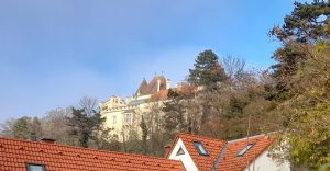 Pourquoi on y va ? Parce que c’est dans ce château que Madame Royale, la fille de Louis XVI et Marie-Antoinette, a passé les dernières années de sa vie, aux côté de son neveu Henri d’Artois, comte de Chambord et prétendant à la couronne de France en tant que petit-fils de Charles X. La plus jeune sœur de Napoléon, Caroline, y vécut également des années plus tôt. L’Histoire de France post-révolutionnaire est donc bien liée à ce château et à ce coin de Basse-Autriche situé à quelques kilomètres au sud de Wiener Neustadt.