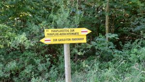 Pourquoi on y va ? Parce qu’un point de vue abrité qui offre une très belle vue sur Lilienfeld et son abbaye s’appelle « Parapluie-Aussichtswarte », littérallement le « point de vue du parapluie ». On ne peut pas manquer ça !