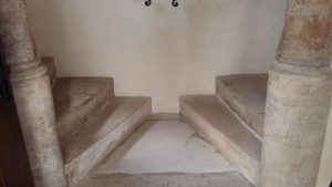Et en bonus, une autre curiosité ! Dans la cour qui devance l’escalier, vous verrez sur l’aile de droite une niche assez particulière. Elle est recouverte à l’intérieur d’arbres, de fleurs et d’oiseaux qui furent peints à la même époque que les escaliers furent construits ! Ses couleurs sont incroyablement conservées car elle fut murée et redécouverte seulement en 2013 ! Les spécialistes pensent qu’il s’agissait d’une volière, ou d’une niche pour abriter les paons du château.