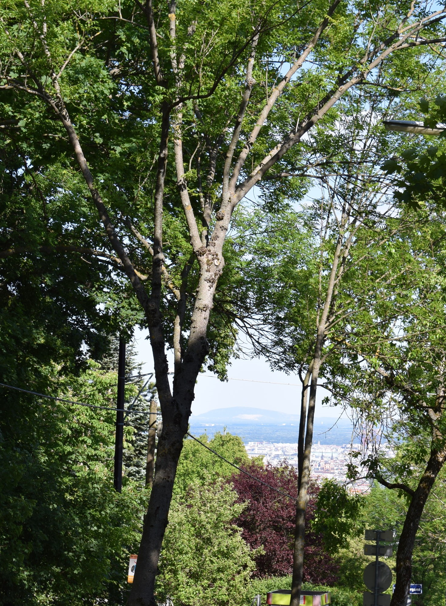 Avant de poursuivre son chemin, il faut bien penser à se retourner ou à redescendre la rue pour profiter de l’incroyable vue qu’elle offre sur Vienne entre ses maisons et ses arbres. On y voit d’ailleurs très bien les petites Carpates qui se trouvent en Slovaquie.