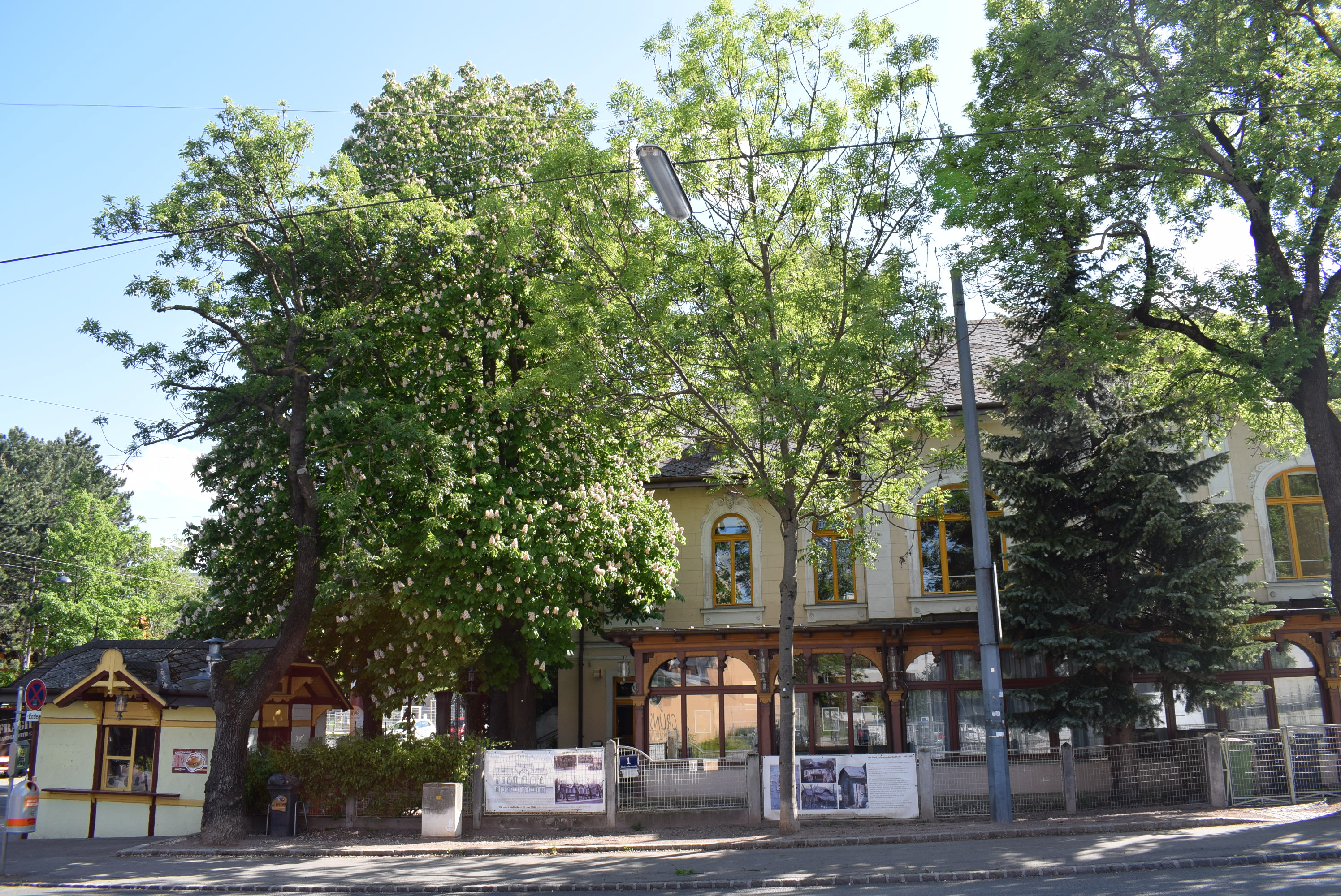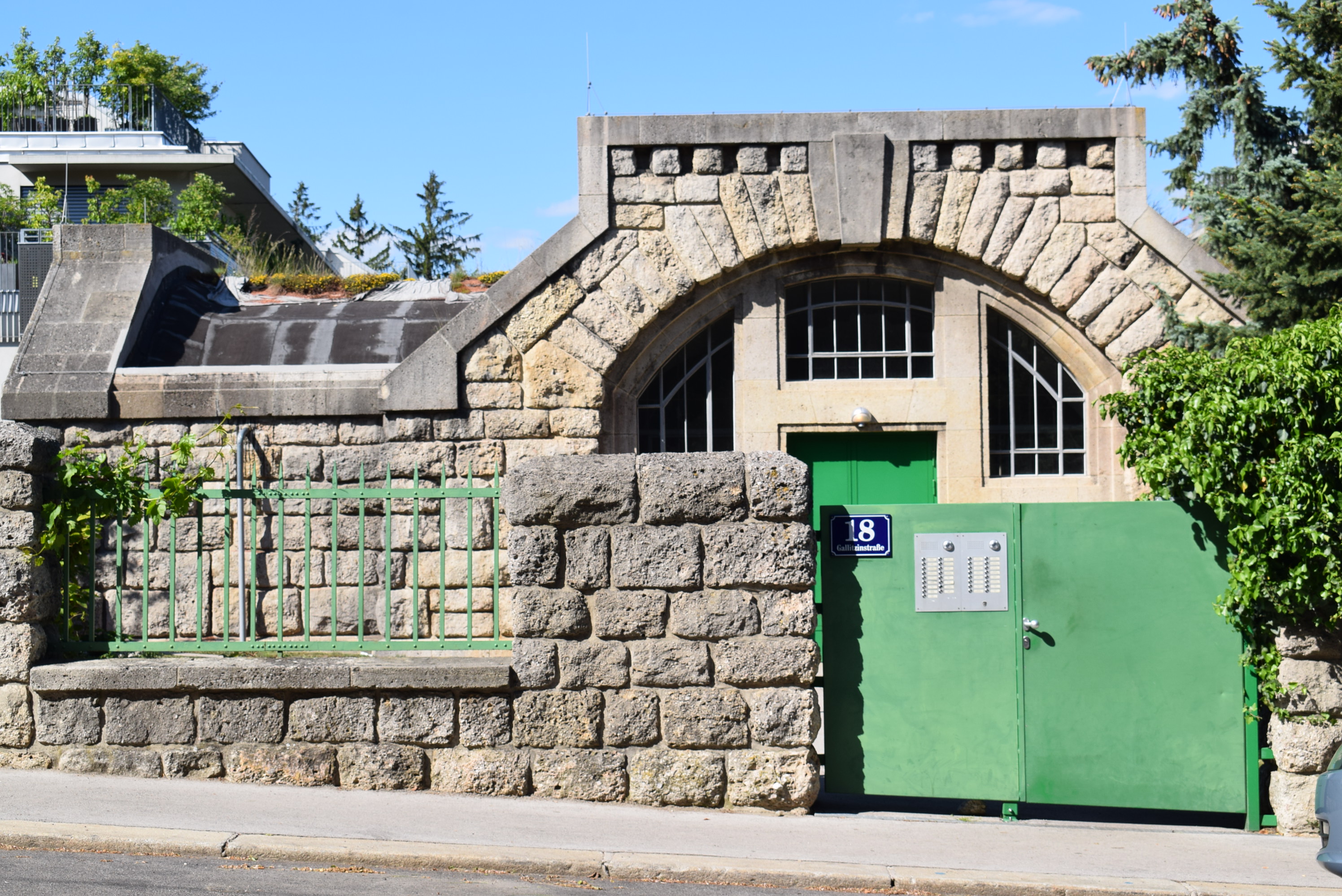 Reprenons depuis le numéro 1 de la rue, la villa. Elle est toujours en activité, malgré des restaurations qui pourraient se faire attendre. Elle fut construite en 1907 pour faire partie d’un très grand restaurant, la Gasthaus Bockkeller. Elle pouvait accueillir jusqu’à 2000 personnes (en comptant les places dans le jardin). Sa présence rappelle bien l’époque durant laquelle, avant la Première Guerre mondiale, un nombre impressionnant de Viennois venaient se balader le dimanche sur les hauteurs de la ville pour prendre l’air, manger, boire, et danser. La villa est aujourd’hui le siège de l’association Wiener Volksliedwerk, qui promeut la musique folklorique viennoise en y organisant notamment des concerts. En face la maison de retraite, choc esthétique de béton, bitume et grilles.