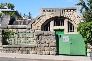 De l’autre côté de la rue, on tombe rapidement sur une énigme. Ce bâtiment, avec de nombreuses sonnettes au niveau de son portail. Un crématorium ? Une église originale ? Une villa avant-gardiste ?