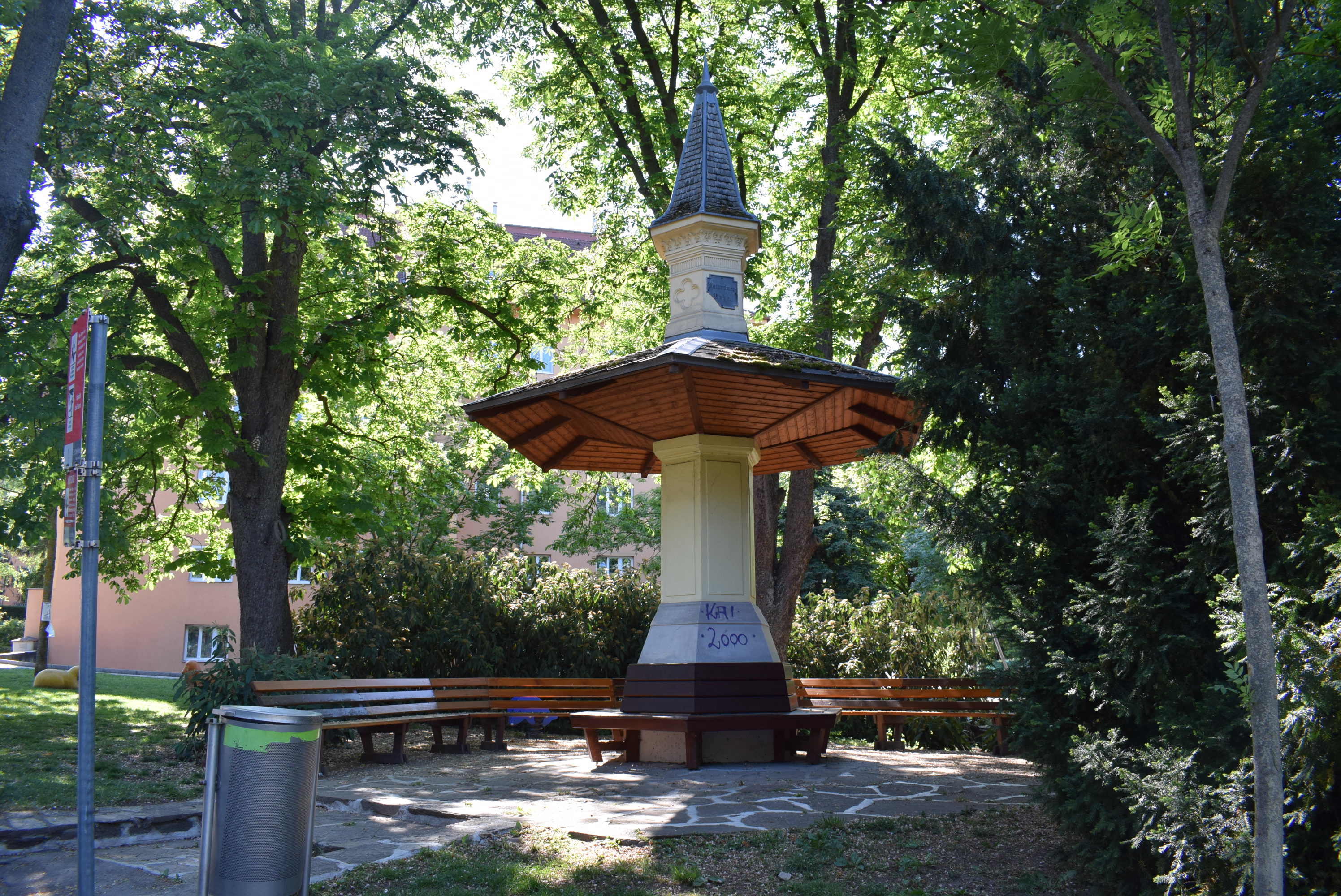 On continue et on arrive sur une petite place qui semble nous attendre, ou plutôt une aire de repos, la Katharinenruhe. On peut en effet s’y asseoir à l’ombre. Les hommes peuvent aussi profiter d’un magnifique pissoir. Les femmes et les enfants se débrouillent 😊. La construction de cette jolie aire de repos remonte à 1886 et à la décision du maire d’alors, Ignaz von Kuffner, propriétaire de la brasserie Ottakringer. Il décida de la baptiser Katharinenruhe en hommage à sa fille Katharina (aujourd’hui je pense que cela ferait scandale…).