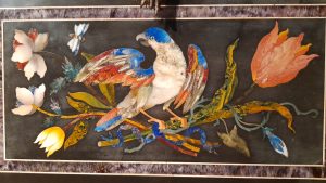 Le cabinet Badminton fut réalisé au XVIIIe siècle avec le concours des incroyables ateliers de pietra dura des Médicis à Florence. La pietra dura est un art qui consiste à réaliser des tableaux lisses en juxtaposant des pierres d’origines différentes et en utlisant leur aspect visuel pour composer le motif. Ce cabinet fut commandé par un duc anglais qui résidait à Badminton, d’où le nom donné à ce chef-d’oeuvre. Approche-vous bien près pour en admirer les détails. Le prince Jean-Adam II de Liechtenstein en fit l’acquisition en 2004 pour 17 millions de livres sterling, soit 24,6 millions d’euros à l’époque, ce qui donna un autre surnom au cabinet, celui de meuble le plus cher du monde.