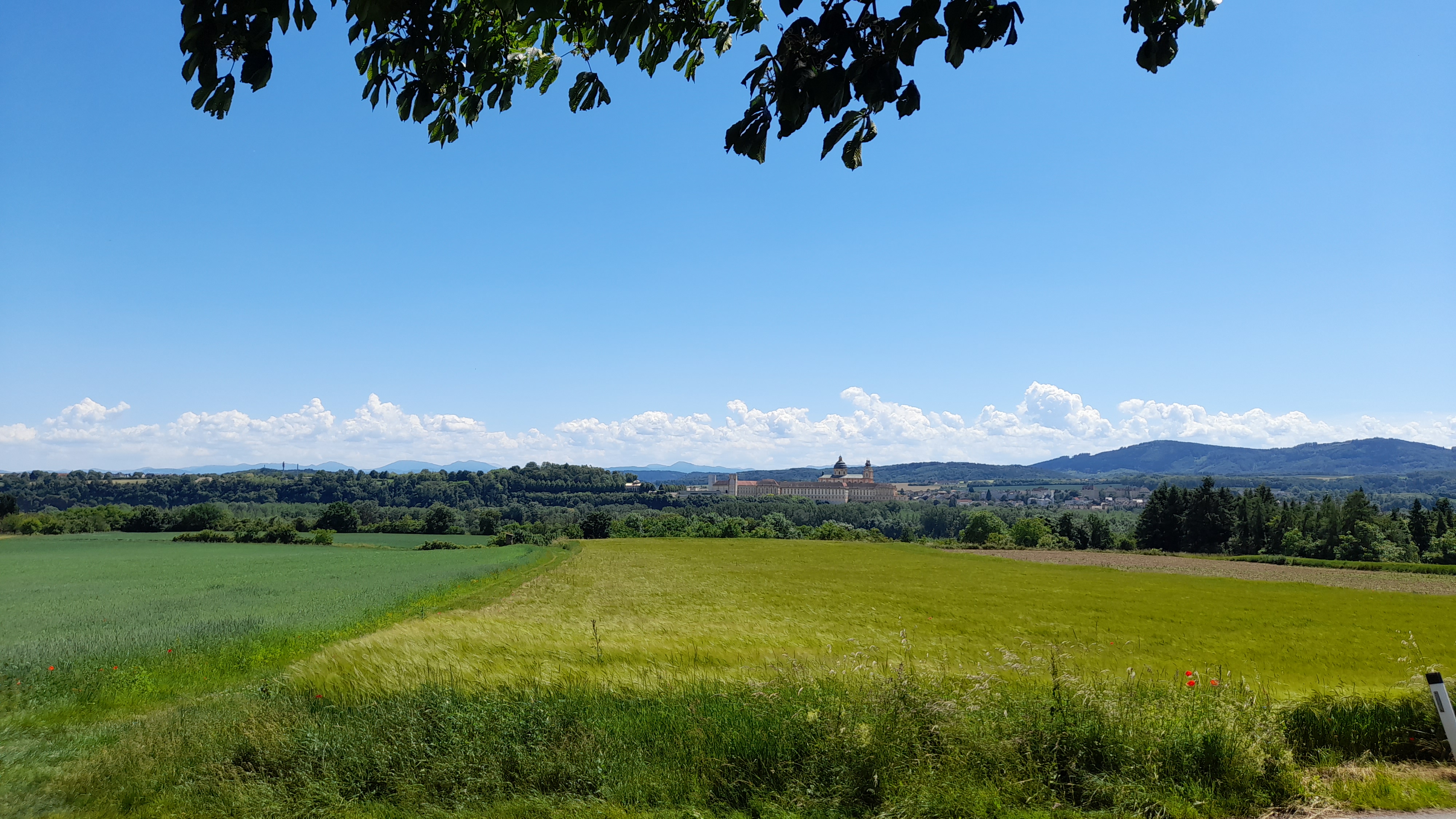 14,6 km. Faite avec l’étape précédente car les bus ne passent à Maria Laach qu’en semaine (bus 797). On peut toutefois aussi dormir sur place. Cette étape nous fait traverser quelques petits villages qui possèdent, comme nombre de très petites localités de la région, des clochers qui sont de simples tours en bois. Ces localités n’ayant pas les moyens de construire de chapelles, elles se contentèrent de construire ces clochers, qui sont toujours très bien entretenus. Entre Felbring et Zintring, on trouve des panneaux indiquant le « Jauerling-Runde 1 » qui ne correspondent pas à notre tour et peut nous faire tourner en rond. En arrivant à Emmersdorf, on a une très belle vue sur l’abbaye de Melk. La Marktplatz d’Emmersdorf est charmante comme tout et on y trouve une petite boutique de produits locaux en libre-service, profitez-en.