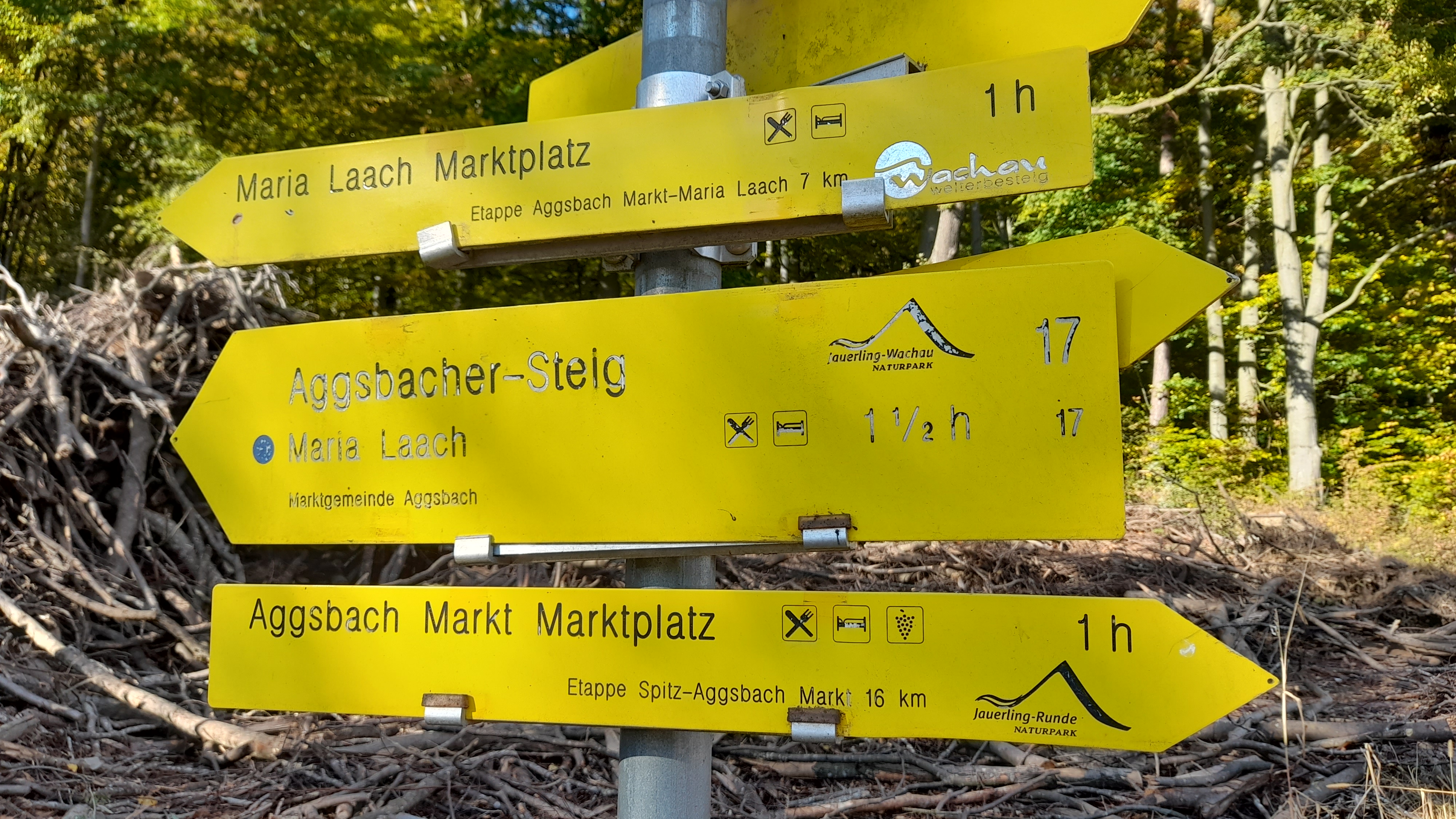 Sur les panneaux, suivez bien l’itinéraire du Jauerling-Runde, certains indiquent juste le Jauerling (le mont), ce qui peut être un autre chemin, et certains sont accompagnés du même logo, mais de la mention Jauerling-Wachau. Nous suivons toujours le Jauerling-Runde.