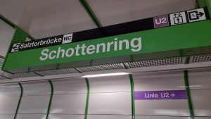 Sur le chemin, je devais faire un changement à la station de métro Schottenring et décidai de sortir histoire d’immortaliser les lieux. Schottenring pourrait être en effet traduit par « l’avenue des Écossais ». Comme pour Schottentor (« la porte des Écossais »), son nom est dédié à l’abbaye des Écossais (Schottenstift) qui se trouve sur le Freyung. Cette abbaye n’a toutefois pas été fondée par des Écossais comme son nom l’indique, mais par des moines irlandais ! Ces derniers venant d’un monastère de l’île écossaise d’Iona, on leur attribua cette origine. (Cette petite histoire a plus que ravi le personnel du Flanagans).