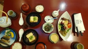 À Vienne, on peut prendre un petit-déjeuner japonais chez Haas&Haas, [LIEN] mais je ne l’ai découvert qu’après cette journée japonaise. J’ai donc préparé un petit-déjeuner japonais typique à la maison car je m’étais d’ailleurs rendue compte que j’avais tout ce qui était nécessaire à sa préparation. Au menu et servi en même temps, de la soupe miso, un peu de riz, un morceau de poisson grillé, une petite omelette et une petite salade, le tout accompagné de sencha, thé vert japonais le plus courant. Rien de compliqué à cuisiner, mais la préparation demande quand même pas mal de temps. L’occasion de se plonger aussi dans l’écoute de quelques radios japonaises. J’ai par ailleurs adoré ce petit-déjeuner très complet et je le refais depuis régulièrement.