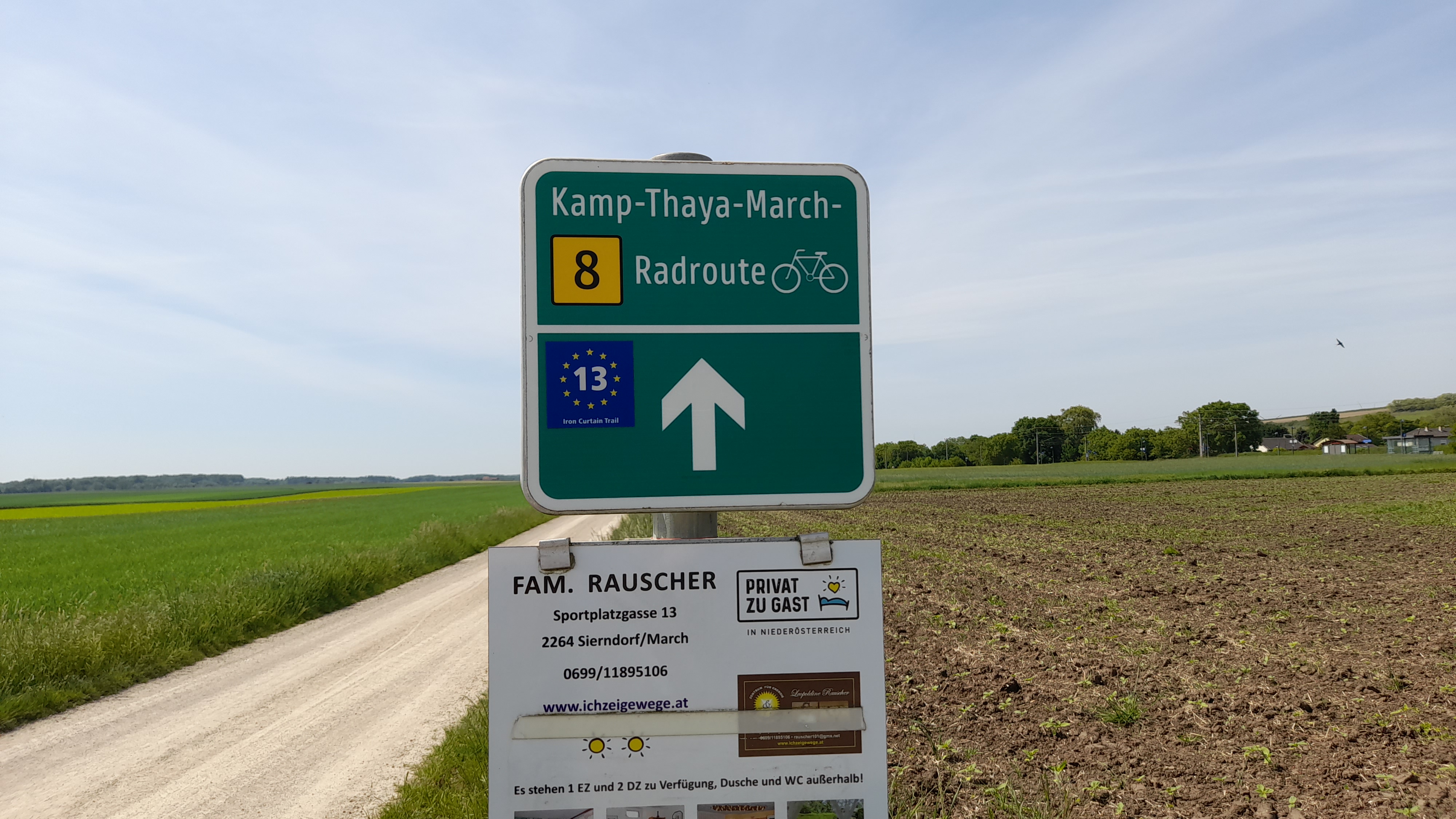 Lors de cette première étape, on quitte la Thaya pour rejoindre les rives de la Morava en traversant des paysages quelque peu vallonnés avec champs et vignes à perte de vue et avec en toile de fond de petits monts se trouvant en République tchèque et en fin de parcours de petits monts se trouvant en Slovaquie.