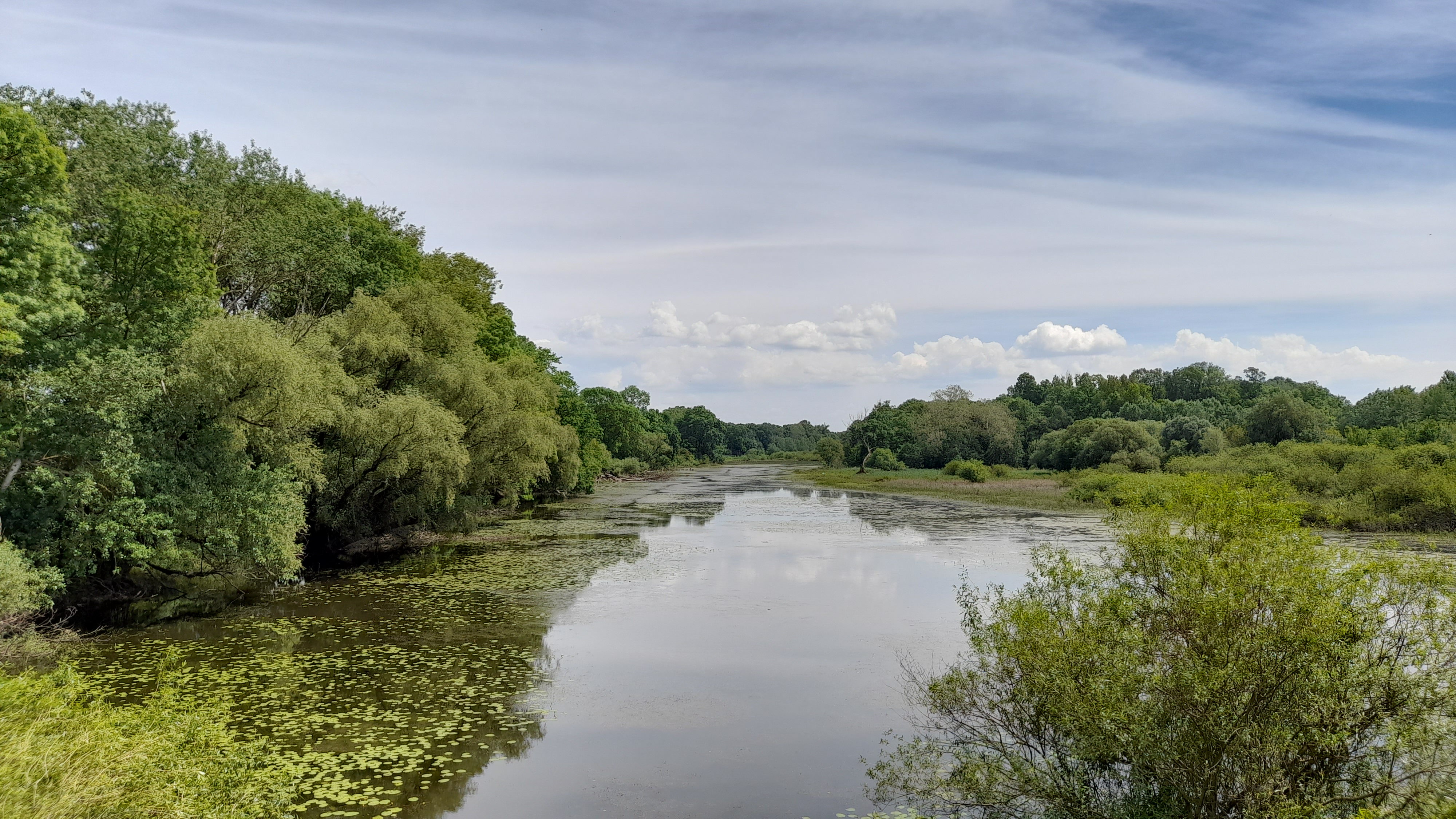 La deuxième étape se déroule principalement le long, ou plutôt à proximité de la Morava. On ne voit pas constamment ses eaux car ses abords sont très verts et arborés, ce qui la rend d’ailleurs des plus charmantes. Son cours demeure naturel ! On voit ainsi aussi beaucoup d’espèces d’oiseaux. La Morava naît dans les monts Śnieżnik à la frontière entre la Republique tchèque et la Pologne. Elle marque ici la frontière entre l’Autriche et la Slovaquie, et elle se jette dans le Danube à Devín, en Slovaquie, juste après Hainburg. Sur la fin de l’étape, on voit la banlieue de Bratislava et ses hautes tours d’habitation, qui contraste avec les chemins de campagne que l’on arpente.