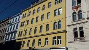 En tout cas, en Autriche, c’est bien différent, du supermarché au château de Schönbrunn, on peut dire que le jaune est à l’honneur. On le retrouve dans toutes ses nuances, du plus pâle au plus éclatant, dans les rues et sur les routes. N’avez-vous pas en effet été marqué par l’impressionnant corps de bâtiment de l’abbaye de Melk sur l’autoroute A1 ? Solaire, c’est le qualificatif qui me vient toujours en tête en passant devant. Le jaune est donc ici bien élégant. Châteaux, abbayes, maisons et immeubles aiment s’en revêtir.