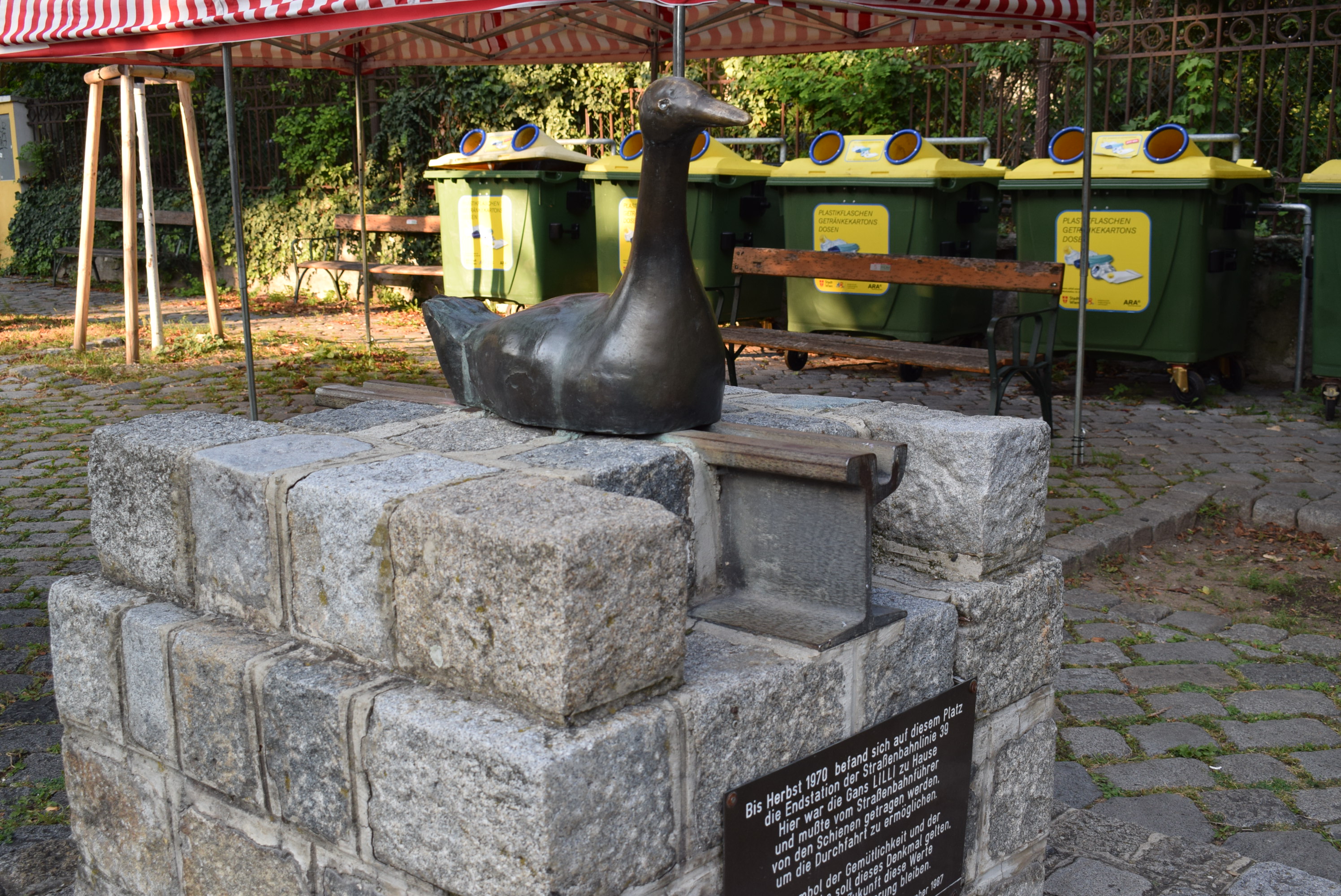 Cet été, je tombai au détour d’une balade dans le très beau village de Sievering (19ème arrondissement de Vienne) sur une statue d’oie. Oui ! Une oie sculptée et présentée sur un piédestal. Mon état de curiosité était alors poussé à son maximum et de nombreuses questions me taraudaient. Avait-elle sauvé la ville d’un incendie ou d’une attaque gauloise comme celle du Capitole romain ? Avait-elle annoncé la présence d’une célébrité comme celles de Tours pour montrer où se cachait le fameux saint Martin ? Rien de tout cela ! Lilli, c’était juste une oie qui aimait se coucher sur les rails du tramway qui remontait la Sieveringer Straße jusqu’en 1970 (la ligne 39, remplacée par le bus 39A). Son habitude posait quelques soucis de circulation, puisque la personne conduisant le tram devait s’arrêter et descendre pousser l’animal. Ce que faisaient aussi certains habitants de Sievering. Une connaissance me raconta même que sa grand-mère le faisait très régulièrement. Lilli marqua ainsi les habitants du quartier de Sievering et malgré le fait qu’elle gênait la circulation du tram, sa disparition affecta de nombreuses personnes, et sa mémoire fut vive très longtemps. Ce petit monument fut en effet inauguré en 1987 ! Lilli y est posée sur son rail pour l’éternité !