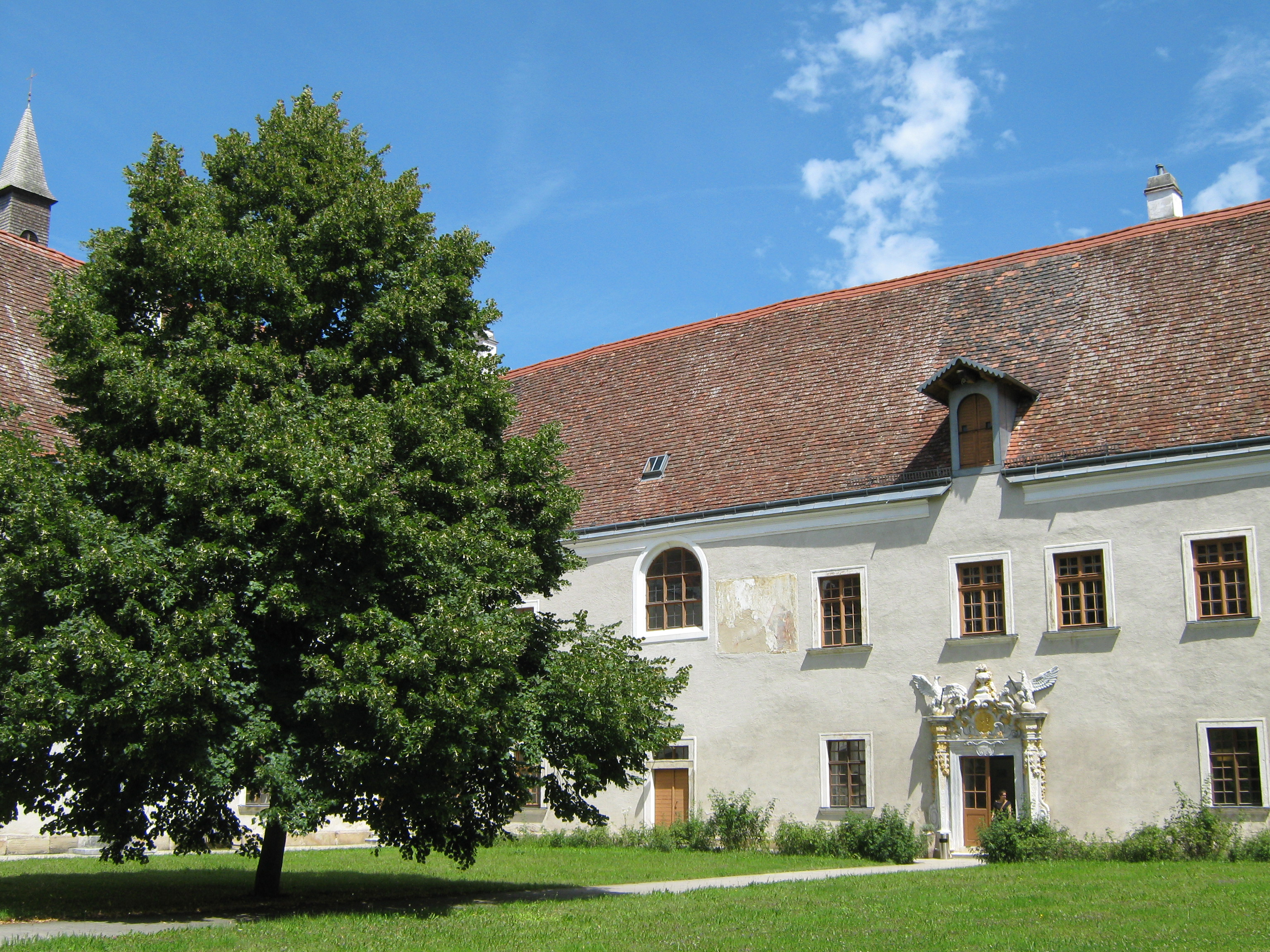 Un dimanche à l’été dernier, je voulais sortir de la ville sans aller trop loin. Tel un réflexe dominical, je feuilletais mon guide de la Niederösterreich-CARD. Je tombai alors sur « Kartause Mauerbach », qui selon la photo qui la présentait, était un édifice religieux digne d’intérêt et se trouvait à une demi-heure en voiture de Vienne. Je me mis alors en route, sur ma chère Sieveringer Straβe. Je ne savais trop ce qui m’y attendait. Un monument ouvert seulement les week-ends en été ne devait pas avoir trop à offrir. Enfin bon. Je pouvais au moins profiter de la magnifique forêt viennoise (Wienerwald). Une fois arrivée, quelle surprise ! Indescriptible ! Un alignement de petites maisons autour d’une vaste cour carrée donnait à ce monument une vraie majesté, et cela au pied de collines boisées enchanteresses. C’est là que seule, devant ce spectacle incroyable, je m’exclamai : « Mais bien sûr ! Karthause doit vouloir dire chartreuse ! ». Ainsi je me retrouvais chez les chartreux, et fière de cette découverte je courus vers l’entrée. La surprise se poursuivit de salle en salle. Le monastère, fondé en 1314, a été reconstruit et réagrandi dans les premières moitiés des XVIIème et XVIIIème siècles, à chaque fois à la suite d’une invasion des Turcs. Aujourd’hui il n’y a plus de religieux dans ces lieux, mais ils permettent d’approfondir certaines périodes de l’histoire de l’Autriche. Ainsi c’est un édifice baroque avec de très jolis décors, dont certains d’une grande originalité. Les voûtes peintes de l’église en camaïeu de bruns sont impressionnantes. Les lieux sont d’ailleurs très spacieux et vu le nombre de visiteurs, on se retrouve souvent seul dans les différents espaces à visiter. Le cloître fait en effet près de 500 mètres de long et c’est sur ce dernier que donnent les anciennes cellules des moines. La présentation du monastère, sur ses panneaux et lors de sa visite guidée, ne se fait qu’en allemand. Toutefois, même si l’on ne maîtrise pas la langue, on peut très bien saisir le quotidien des lieux tel qu’il pouvait être autrefois en arpentant l’ensemble architectural.