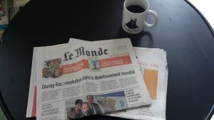 Outre l’aspect pratique, c’est une habitude très agréable. A peine passée la porte du magasin que le vendeur ou la vendeuse m’accueille avec un grand sourire et s’exclame « Le Monde ! ». Autant vous dire que j’en suis toujours on ne peut plus ravie, me sentant un peu spéciale de par l’attention qu’ils me portent, allant même jusqu’à me sentir mieux intégrée au sein de mon quartier. Tout cela grâce à du papier !