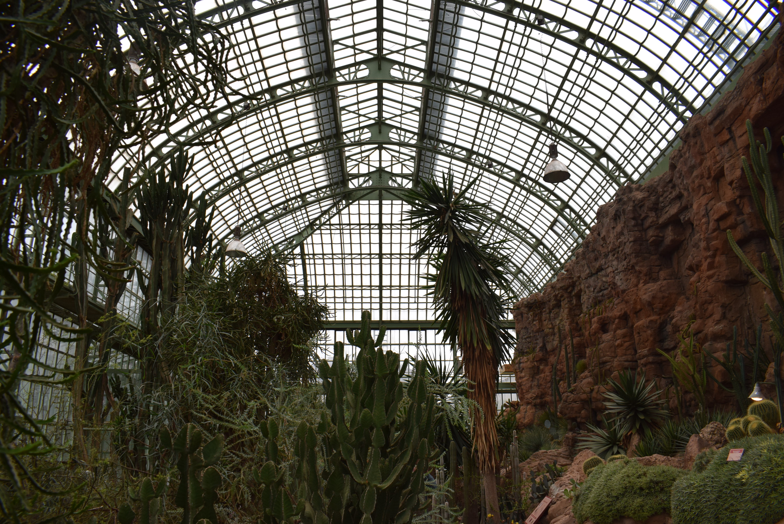 La serre surprend par les différences de température et de climat entre ses différents pavillons, respectivement 5, 12 et 18 degrés du pavillon Nord au pavillon Sud. On trouve en face de l’élégante serre une serre plus petite et au style moins travaillé qui abrite la maison du désert (Wüstenhaus) dans laquelle on peut observer la faune et la flore des grands déserts du monde.