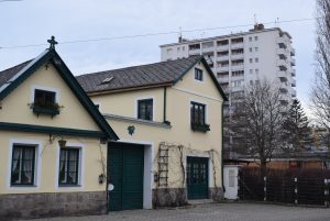 Chez Leitner, sur le chemin, on a une superbe vue sur Vienne, on peut prendre place au milieu des vignes, et on peut manger d’excellents Stelze (jarrets de porc grillés). Si Leitner est fermé, complet, ou que vous souhaitez aller voir ailleurs, poursuivez votre chemin ! Quand vous rejoignez la Wilhelminenstraße, prenez la 2ème à droite (la Kollburggasse). Vous découvrirez ainsi quelques jolies villas de la fin du XIXème siècle. Au bout de la rue, prenez à gauche et vous arriverez sur un petit parc au croisement de la Ottakringer Straße et de la Thaliastraße*. Prenez la Ottakringer Straße, traversez la route et vous arrivez dans le vieux Ottakring à l’allure de village, entouré d’immeubles parfois hauts en béton. C’est pour moi l’endroit qui résume le mieux l’arrondissement, entre l’ancien village, les vignes, la forêt et le quartier populaire. Une carte postale très authentique d’Ottakring ! Encore un endroit pour prendre une photo de groupe d’ailleurs. Du château à l’ancien village, il y a une petite demi-heure de marche.