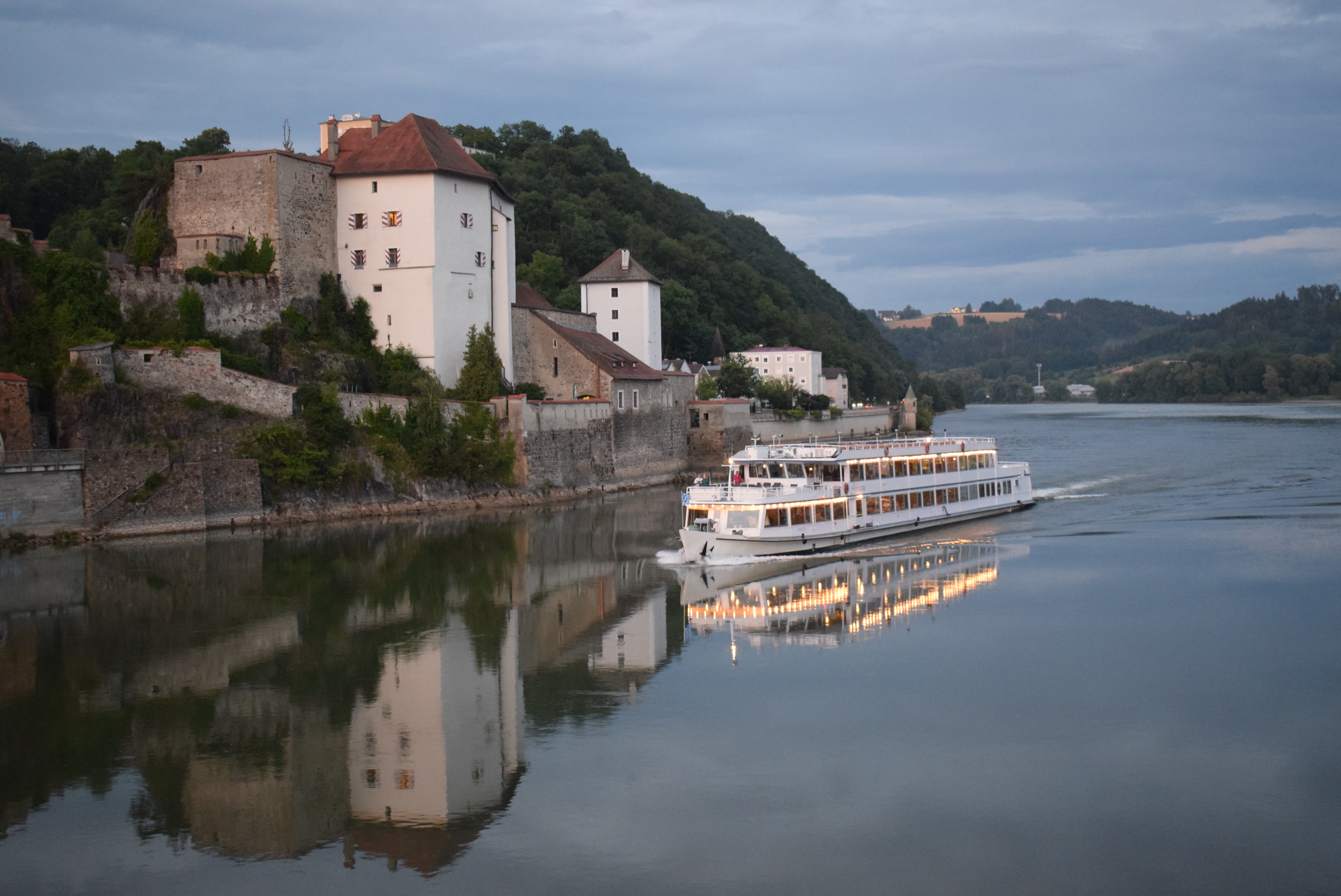 Si vous avez le temps, je vous conseille de vous rendre à la forteresse Veste Oberhaus, l’une des plus grandes d’Europe encore debout. Elle offre un point de vue magnifique sur la ville et sur les deux points de confluence, celui de l’Ilz et du Danube, et celui du Danube et de l’Inn. C’est un dégradé de couleurs transporté par l’eau qui s’offre à nous.