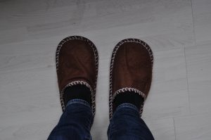 Avant de vivre en Autriche, il me semblait plus que curieux de devoir retirer ses chaussures lorsque l’on entrait dans une maison. Ayant grandi dans une ferme, ôter les bottes pleines de terre ou de fumier était une obligation, mais les chaussures pas du tout, surtout pour les invités. Les souliers que l’on qualifiait « de ville » étaient à nos yeux propres car ils se posaient sur des sols en dur (carrelage, macadam…). Aujourd’hui, je reverrais ce jugement, et presqu’à l’inverse. Cela m’étonnerait que la terre du jardin soit plus sale que poussières et autres matières de trottoirs urbains. Disons que son passage est plus visible à l’œil nu. Toutefois à l’époque, l’idée d’ôter mes chaussures en arrivant chez quelqu’un ou de demander à mes invités de le faire ne m’aurait jamais traversé l’esprit. Et l’expression « mettre des patins » faisait pour moi soit référence à du patin à glace, soit à une personne maniaque de la propreté.