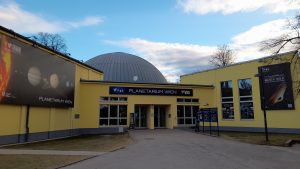 Je vous avais déjà présenté les observatoires d’Ottakring et de Währing pour passer une soirée à observer étoiles et planètes au télescope. Je vous invite à poursuivre le voyage dans l’univers en vous rendant au planétarium de Vienne. Vous l’avez sans doute déjà vu. Il est situé à l’entrée du parc en venant de Praterstern, entre la grande allée du Prater (Hauptallee) et la grande roue.
