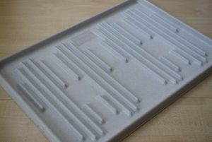 Depuis que je vis en Autriche, je suis devenue adepte, voire collectionneuse, de ce que j’appelle en bon français « les plateaux à chaussures ». Il s’agit de plaques à rebords (des plateaux quoi), généralement en plastique, dont le fond porte des reliefs afin que l’eau, la neige, le sel hivernal transportés par nos semelles puissent s’écouler pour garder les chaussures au sec et le sol propre. N’est-ce pas simplement génial ?
