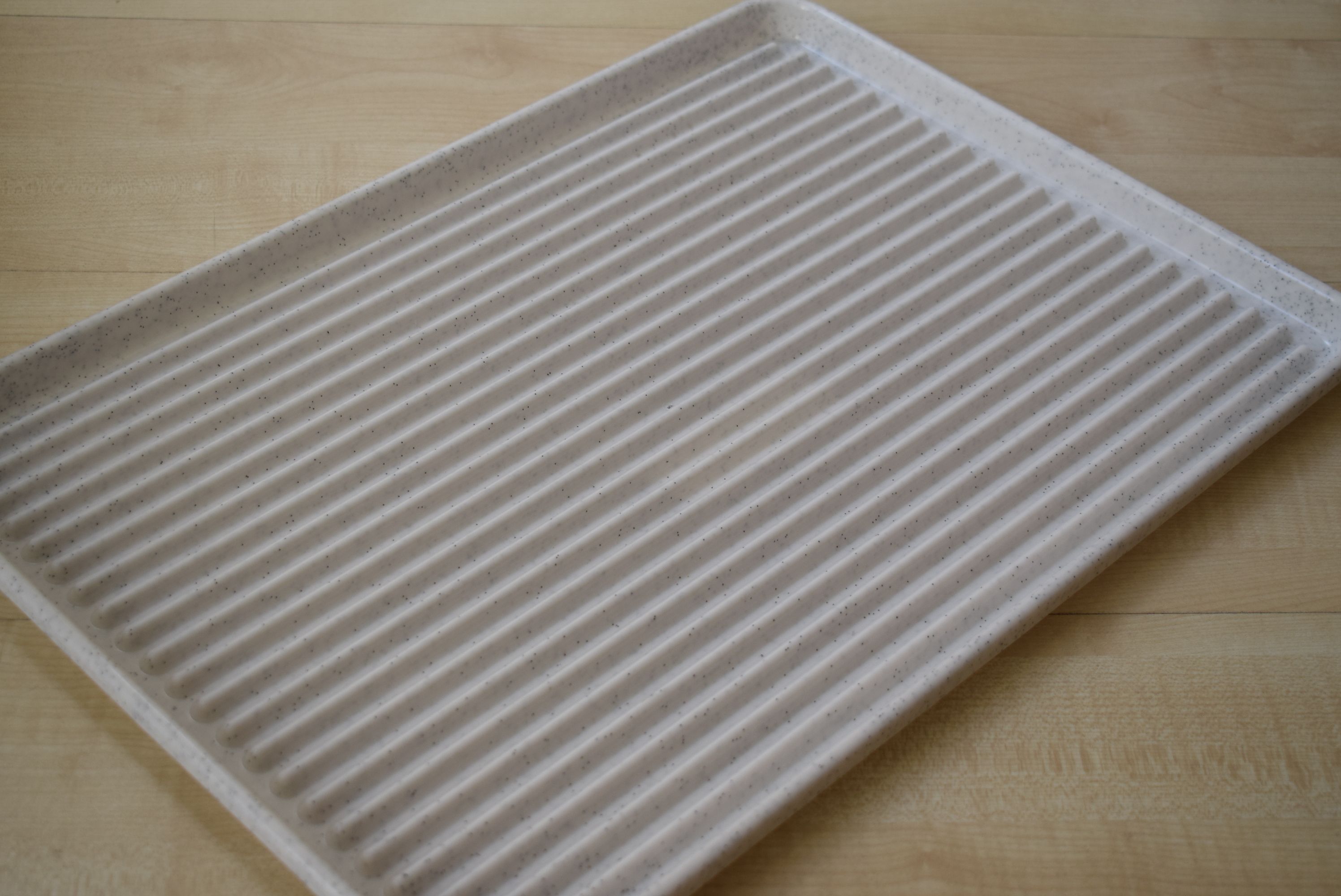 Il est vrai que l’argument esthétique est assez fort. On ne peut pas dire que ces plateaux fassent preuve d’une grande créativité. Ils sont plutôt fades. Côté couleurs, ils se limitent principalement au blanc, au gris, au noir et au marron. On pourrait mieux faire. Et côté motifs en relief, on reste surtout sur des rayures verticales ou horizontales. On a parfois des motifs fantaisie à pois (plateau à picots, pas facile à nettoyer).