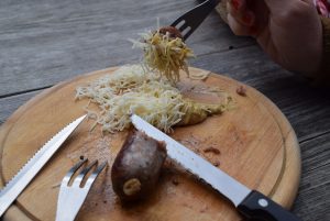Le raifort, on a tous une anecdote croustillante, ou plutôt piquante, à son sujet. Celle à laquelle je pense toujours en en voyant sur mon assiette ou dans les magasins concerne ma sœur. Elle était venue me rendre visite à l’occasion de son anniversaire et ne voulait rien de moins qu’aller à l’opéra pour l’occasion. Nous voilà donc dans la salle de l’opéra national le 10 mars 2017. Fanny était ravie et moi aussi. A la pause, elle voulait prendre un en-cas « à l’autrichienne » comme elle dit. Je lui répondis que l’un des plus typiques était la Sacherwürstel (enfin deux car on sert ces grosses saucisses de Francfort habituellement par deux). Fanny trouva cette habitude de manger des saucisses dans un environnement aussi élégant et luxueux qu’est l’opéra national de Vienne très surprenante. Etant toutefois très curieuse, elle commanda immédiatement les fameuses saucisses. C’est là que l’histoire commence véritablement (je trouvais l’anecdote sur les saucisses quand même de bon goût). L’assiette de saucisses à peine posée sur la table, je vis Fanny saisir avec ses doigts une grosse pincée de raifort râpé. Là, sans réfléchir, je lançai un vif « Non !!! ». C’est là que Fanny, d’un air agacé me dit : « Tu vas arrêter de me commander, je ne suis plus une enfant. Je sais comment manger une saucisse ! ». Je fus touchée par cette réflexion et l’émotion commença à me saisir. L’avais-je trop étouffée en tant que grande sœur ? Devais-je arrêter de lui donner des conseils, de lui donner mon avis ? 36 questions couraient les unes après les autres dans ma tête, et Fanny se mit à littéralement bouillir sur place. Eh oui ! Elle avait bien ingurgité une bonne pincée de raifort. Elle se mit à se tortiller dans tous les sens et à demander de l’aide. Je lui tendis alors un morceau de pain et lui dis que cela n’allait pas durer longtemps. L’effet piquant du raifort est en réalité très bref. Et ensuite ? Fanny affirma en toute simplicité qu’il ne s’agissait pas d’emmental râpé. Et lors de ses venues en Autriche, elle met désormais un point d’honneur à manger au moins une fois une saucisse avec du raifort !