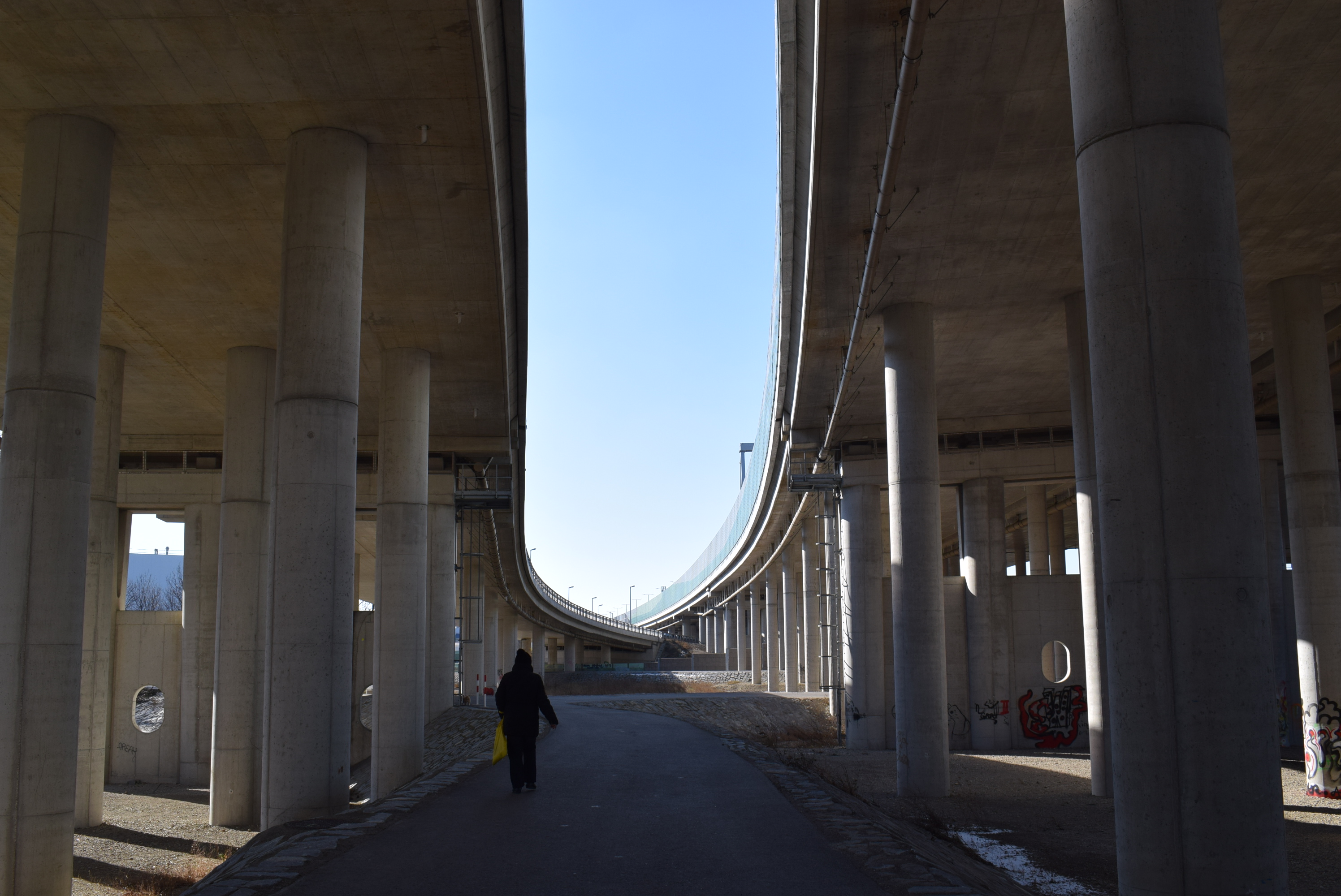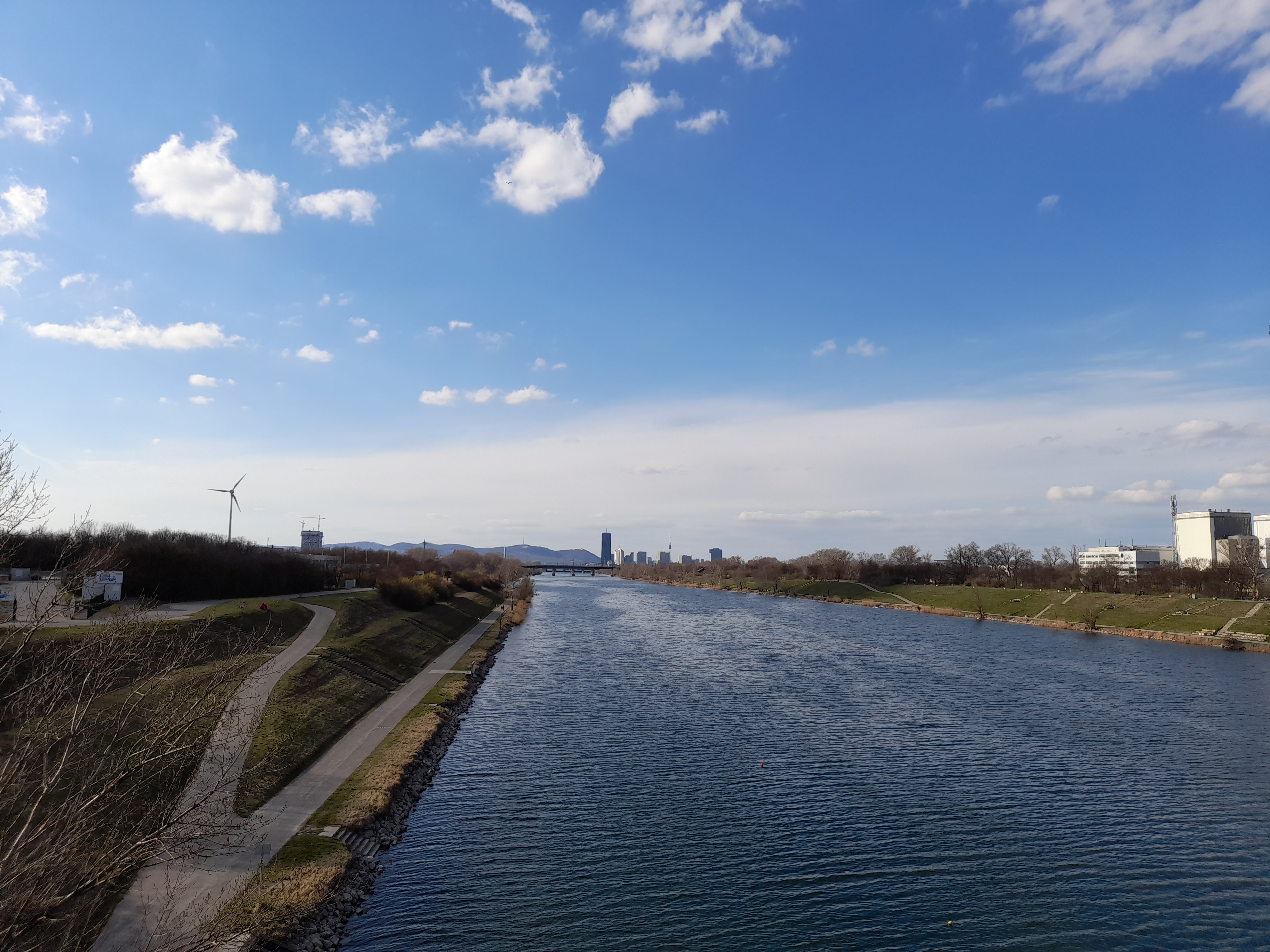 7,8 km. Des rives du canal du Marchfeld à celles du Danube. On découvre aussi rapidement la zone industrielle de Strebersdorf, pour les amateurs de hangars et d’immeubles vieillis plus tôt que prévu. Le canal s’élargit en un grand étang très mignon. On longe ensuite longtemps le Danube d’où on profite d’une très belle vue sur les collines de la forêt viennoise. Je vous conseille de le longer depuis son bord. Cela permet de moins entendre les voitures de la voie rapide voisine. On peut écourter l’étape en rejoignant la station de métro U4 Heiligenstadt si elle s’avère plus pratique en fin de course.