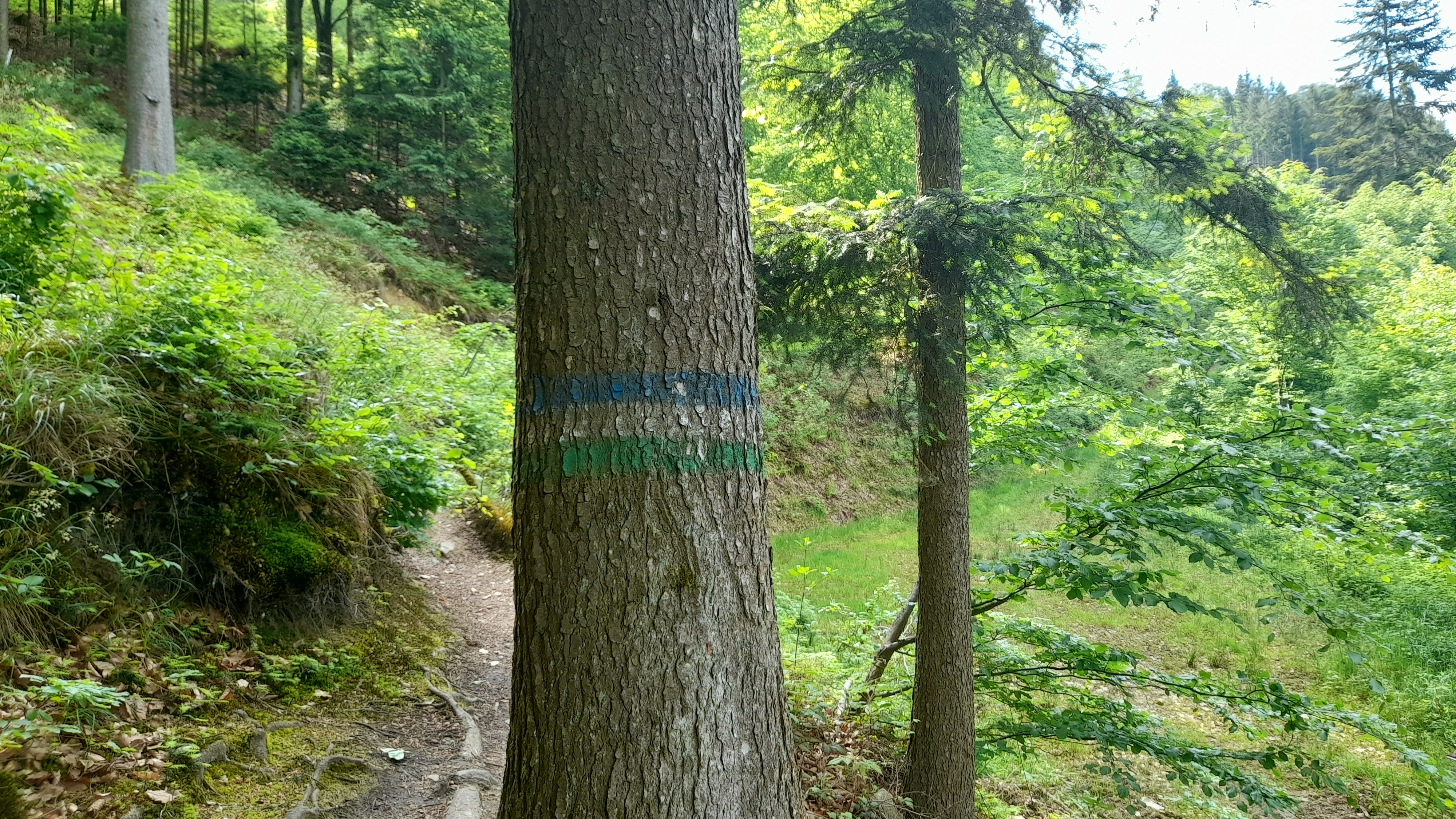 Depuis le lieu-dit Au, comptez une heure de marche pour l’aller-retour pour la ruine d’Haichenbach (3 km à parcourir). Derrière la pension Zur Fährfrau, prenez le chemin qui monte en forêt et continuez toujours tout droit. Quand le chemin se scinde en un sentier et un chemin prenez le sentier sur votre gauche.