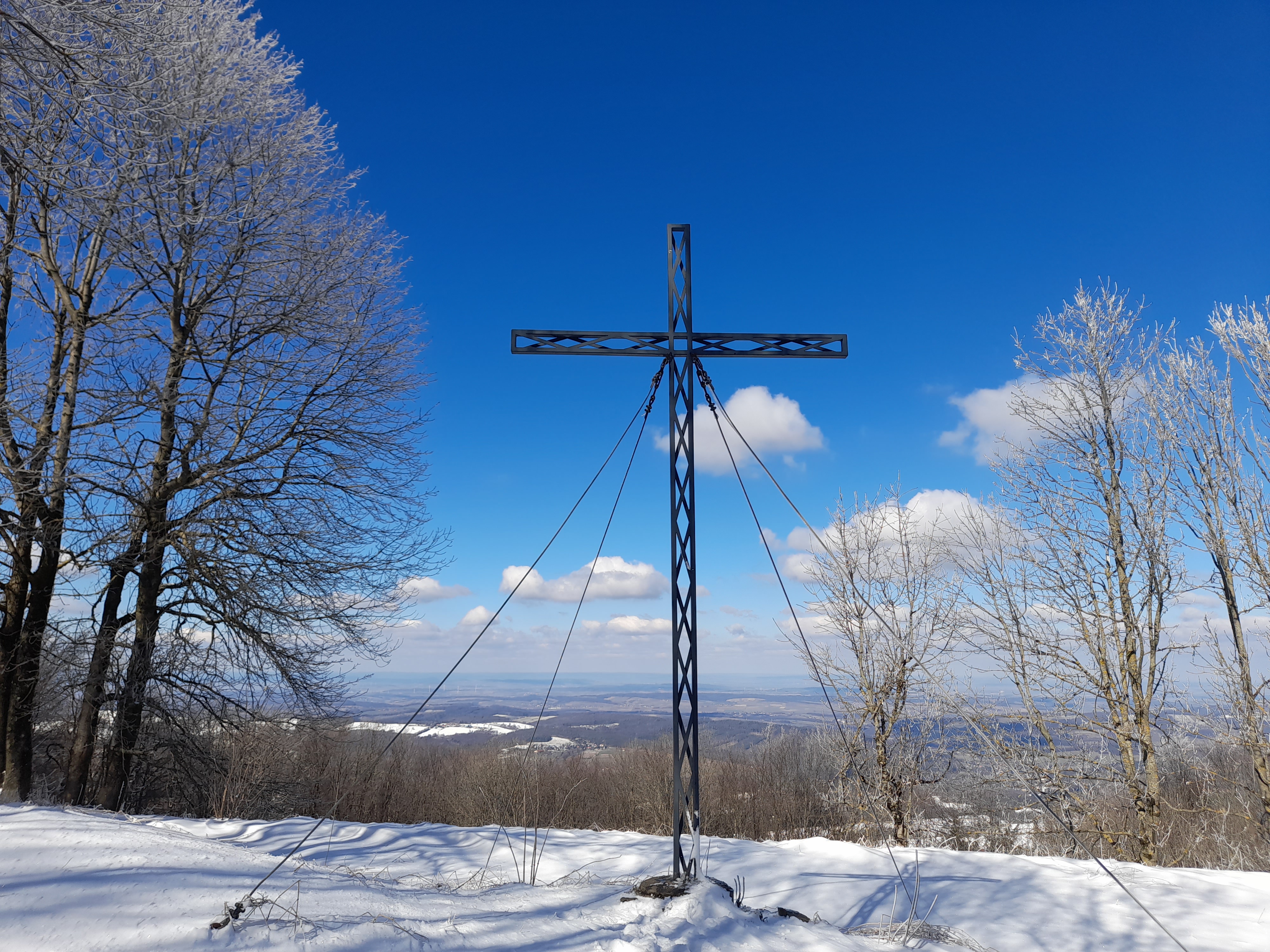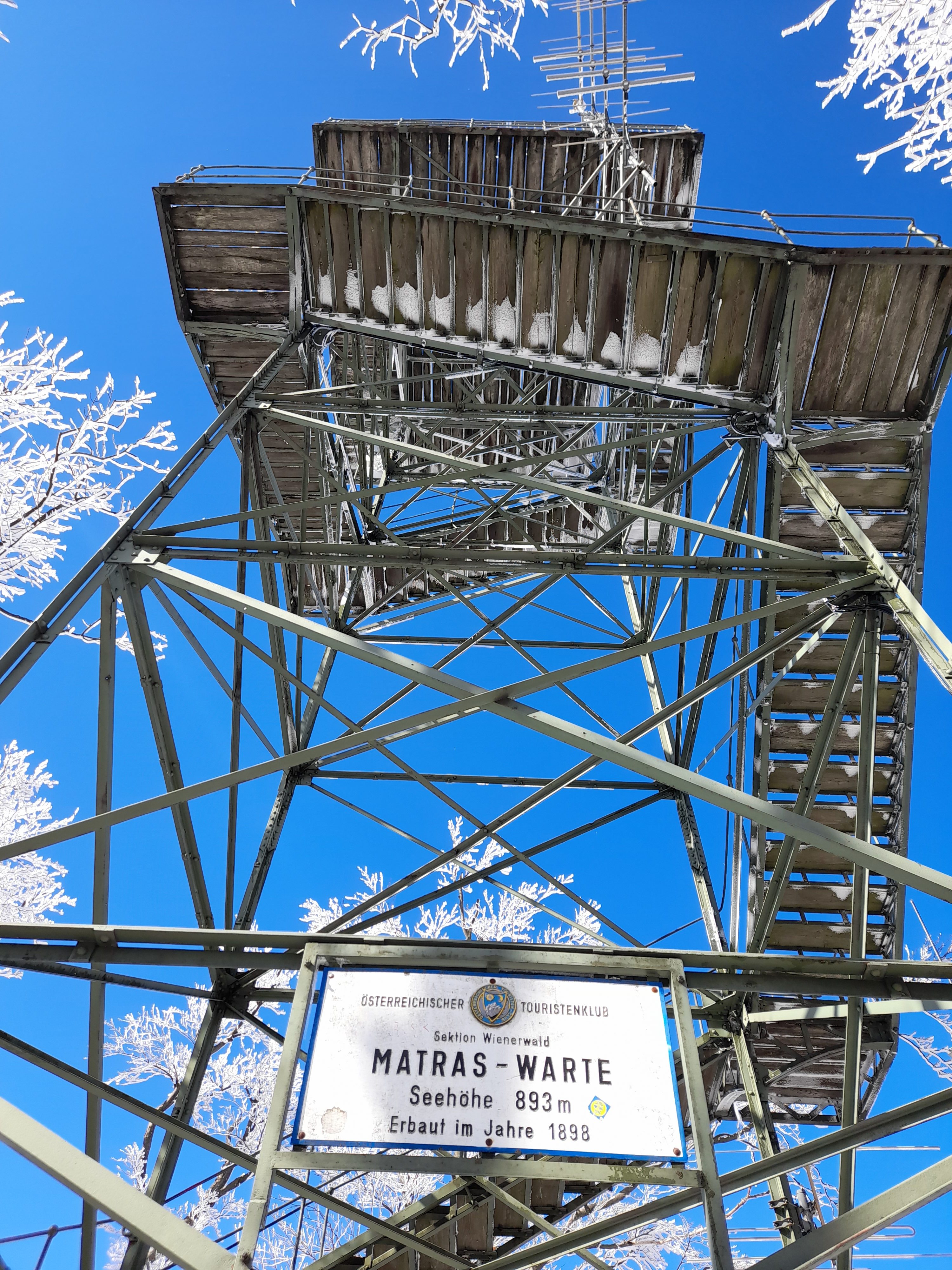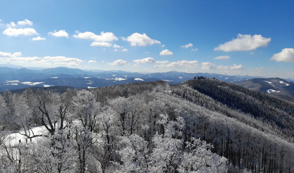 Le sommet du Schöpfl est marqué par une croix et à quelques mètres de là se trouve une tour d’observation, la Matraswarte, qui offre une très belle vue panoramique sur le massif de la forêt viennoise. On voit les collines fondre dans la plaine en direction du Danube au nord et les montagnes qui ferment leur marche au sud. On perçoit également un petit dôme semblant sortir de la forêt et qui correspond à la coupole de l’observatoire Leopold Figl de l’université de Vienne. Il ne peut être visité, mais on peut se rendre au pied si on le souhaite. Comptez 1,5 kilomètres de marche depuis l’auberge qui se situe en contre-bas du sommet du Schöpfl, la Schöpfl-Schutzhaus. À côté de la tour d’observation, on trouve une petite pyramide de pierre qui date de 1867 et faisait partie d’un ensemble de petites constructions qui devaient alors servir à calculer la taille de la Terre en Europe centrale. Que de choses à voir sur le Schöpfl !