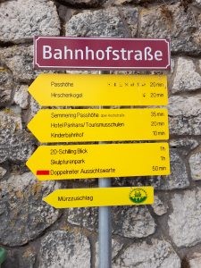 Si vous n’avez pas de voiture, voici une randonnée en montagne facilement accessible en train (une heure et quart depuis Vienne). Le point de départ de la randonnée, « Passhöhe » ne se situe qu’à 20 minutes à pied de la gare et est indiqué depuis celle-ci sur les panneaux jaunes.