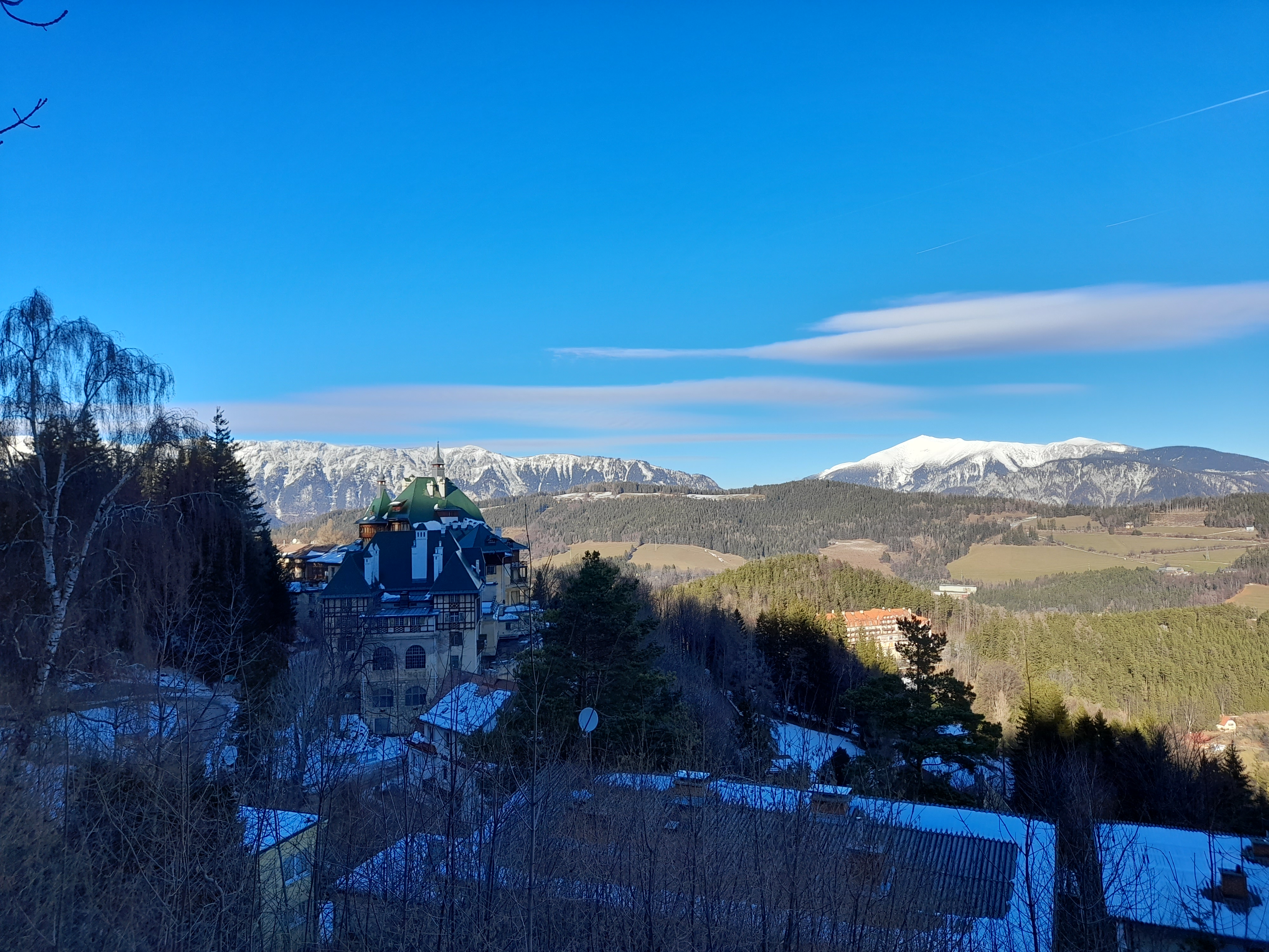 Avant les fêtes, je cherchais un parcours assez facile pour m’essayer aux raquettes. Résultat, pas assez de neige pour faire des raquettes, mais une randonnée fort sympathique dans les montagnes. Parfait si vous cherchez à faire une randonnée au milieu de sommets enneigés non loin de Vienne ou si vous accompagnez des skieurs et souhaitez bouger différemment. La randonnée commence en effet au niveau des stations de ski de Semmering.