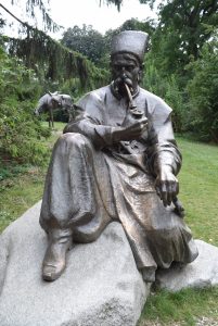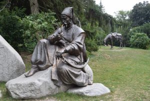 Il y a quelques mois, en me promenant dans le Türkenschanzpark, un grand parc du 18ème arrondissement de Vienne, je tombai nez à nez avec un homme assis sur un rocher. Fumant sa pipe, il semblait attendre ma venue. Et vu son accoutrement, cela devait faire un certain temps, pour ne pas dire des siècles, qu’il m’attendait. Avec son vêtement ample, sa pipe, son chapeau, et sa moustache, je compris qu’il devait s’agir d’un Turc resté là après le siège de Vienne de 1683 perdu par l’armée ottomane. Le nom du parc étant Türkenschanz, ce qui signifie « le retranchement des Turcs », j’étais plutôt sûre de moi. Eh bien non ! En lisant la roche commémorative qui le jouxte, je découvris qu’il était cosaque ! Donc qu’il avait combattu l’armée ottomane pour libérer la ville de Vienne. Il faut dire que son pied appuyé d’une manière bien prononcée sur la roche nous montre plutôt un gagnant qu’un perdant.