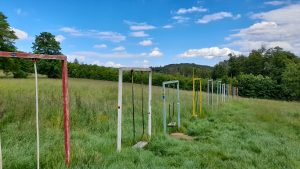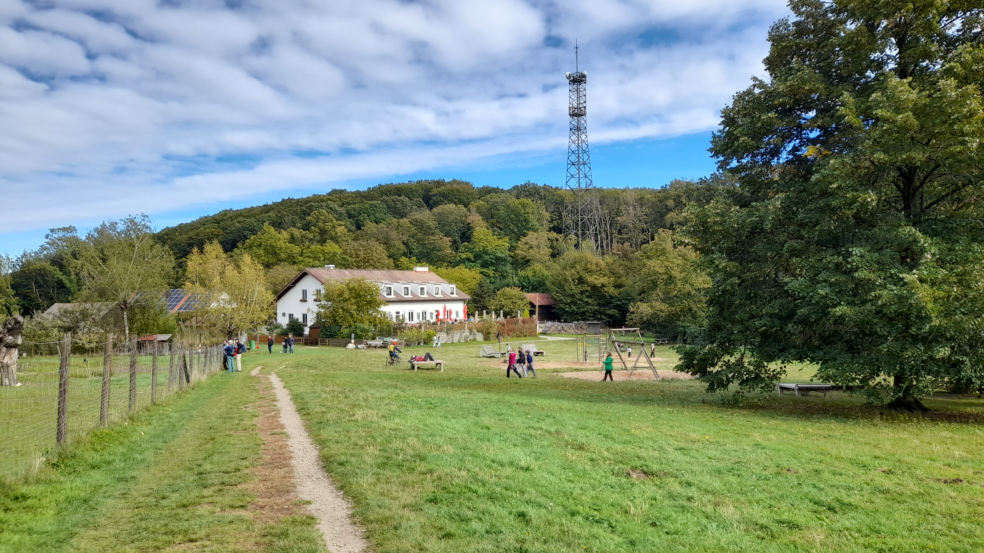 Il ne s’agit pas à proprement dit d’une aire de jeux, mais d’une rangée de balançoires colorées qui créé un très belle effet de surprise. Elles ne sont pas de première jeunesse puisqu’elles se trouvent en face de l’ancien grand restaurant abandonné de ce petit alpage viennois. La randonnée n°8 de la ville de Vienne (Stadtwanderweg 8) nous y mène.