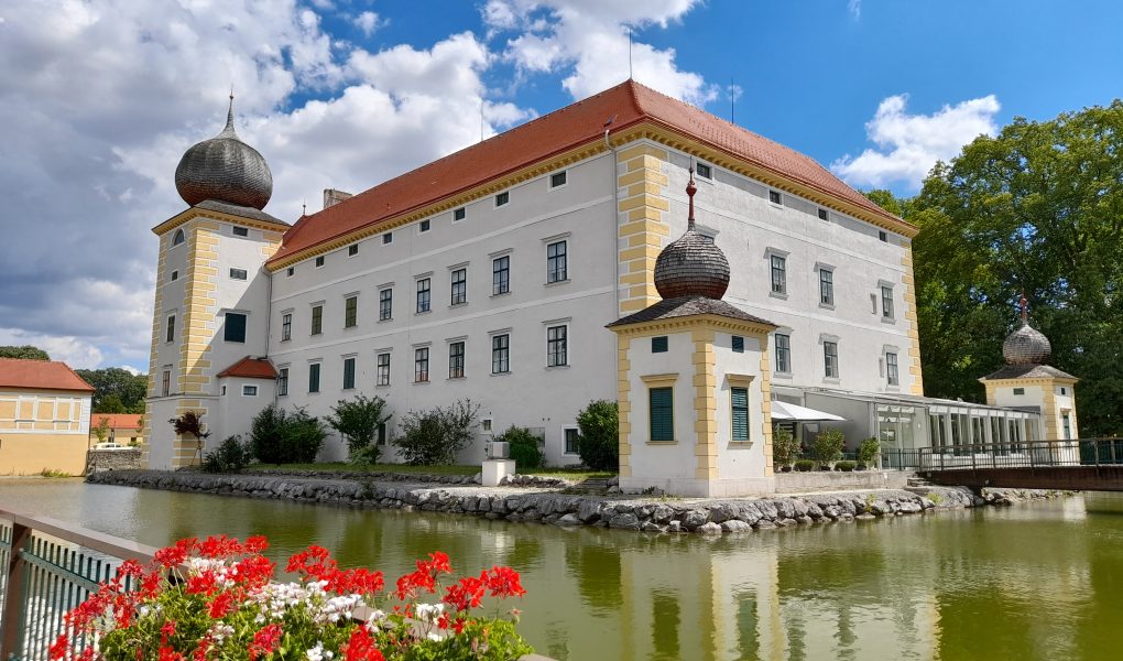 En préparant une sortie dans les alentours de Bad Vöslau, je trouvai sur une carte le « Wasserschloss Kottingbrunn ». Adorant les châteaux, et encore plus ceux qui sont entourés d’eau, je voulus absolument m’y rendre. Je ne savais pas à quoi m’attendre et je fus loin d’être déçue. Ce château baroque entouré de douves en eau est plus que mignon. Les bulbes qui surmontent ses tours et ses fausses pierres d’angle peintes en jaune lui donnent un charme fou. Propriété de la commune, qui assura la restauration de la bâtisse, on peut se promener librement dans sa cour intérieure et dans son parc.