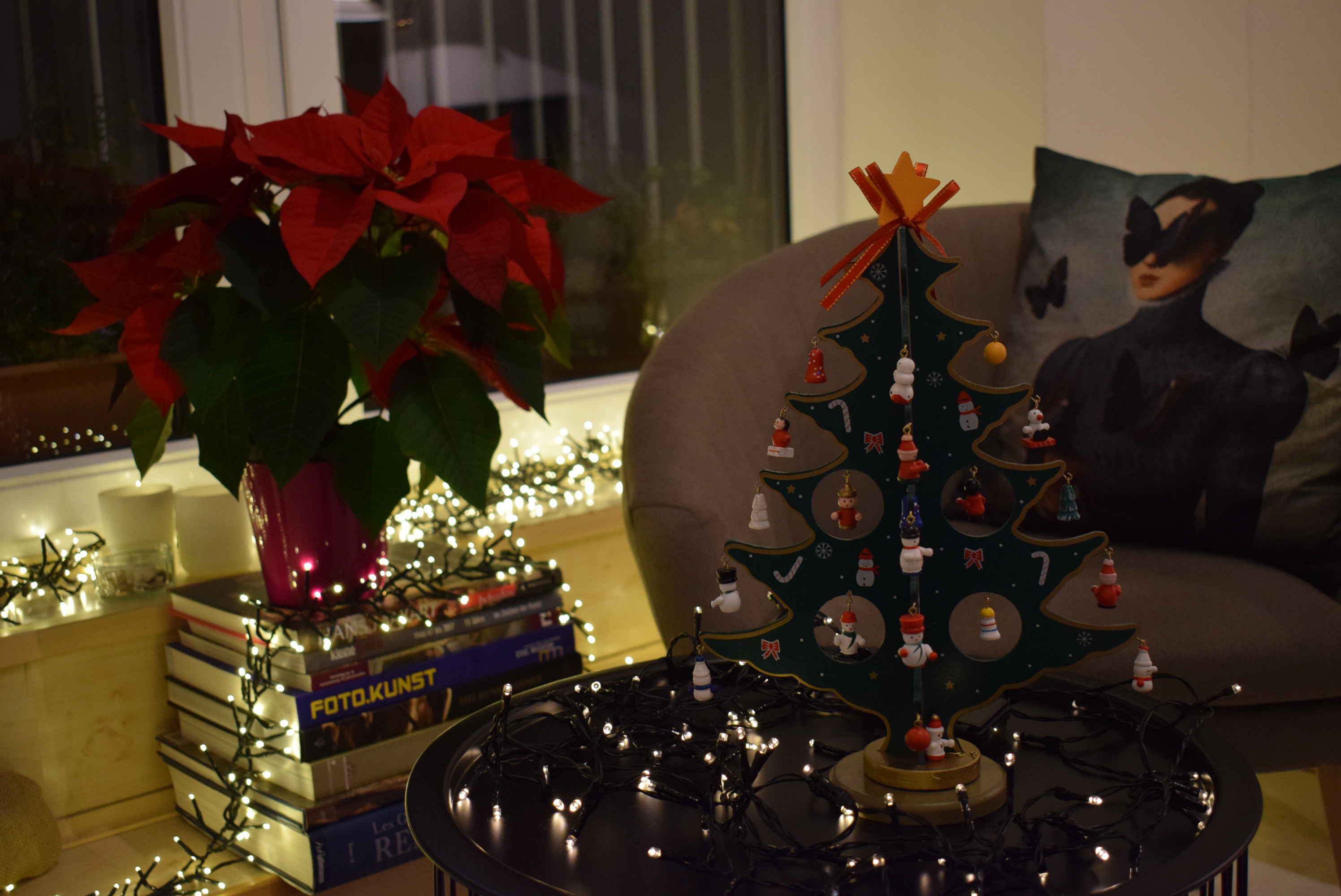 Jusque-là je trouvais la plante, de son vrai nom Euphorbia pulcherrima, plutôt laide je dois vous avouer. Elle ne me semblait pas assez naturelle. Le fait de la voir partout a semble-t-il adouci mon regard (on s’habitue vraiment à tout !). Au point même d’en acheter une cette année. Il faut dire qu’elle apporte beaucoup de couleur à nos intérieurs, et comme les sapins n’arrivent jamais tôt en Autriche, on a là un bon moyen de substitution, et d’ailleurs pas très cher. Le petit arbre avant le gros !