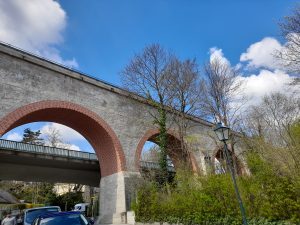 L’eau de la Schwarza provient d’ailleurs des mêmes sources que celles qui alimentent l’aqueduc. Après avoir quitté la forêt, il est rare d’avoir de l’ombre sur le chemin. Un bus s’y arrête au cas où vous souhaiteriez arrêter là (beaucoup de gens aiment aussi faire seulement l’aller-retour jusqu’au musée depuis cet arrêt de bus ou le parking attenant du téléphérique). Un peu plus loin, l’itinéraire nous fait retraverser la route et passer devant l’entrée d’une grande usine de cartonnage. On tombe là sur un panneau indiquant une rue privée qu’il faut ignorer. On commence ensuite à suivre un canal et à marcher sur l’aqueduc ! Il est visible par la présence de petites tours très reconnaissables qui permettent aux employés des eaux de la ville de Vienne de descendre dans la conduite. On traverse alors la ville de cures à l’élégance un peu passée mais pleine de charme de Payerbach-Reichenau. Après la ville, le parcours continue à se faire presque uniquement en ligne droite sur des chemins et des petites routes et en grande partie sur l’aqueduc.