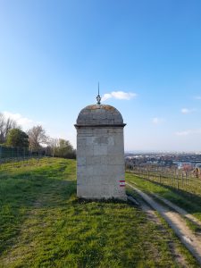 On repart dans les vignes et si des panneaux semblent manquer, il suffit de suivre les marquages rouges de la randonnée n°40. On retombe ensuite sur une petite tour de l’aqueduc avant d’arriver à Mödling, d’où l’on a une vue panoramique sur Vienne. Dans Mödling, il faut aussi se reporter au plan de la brochure ou suivre son instinct (tout droit à la gare).
