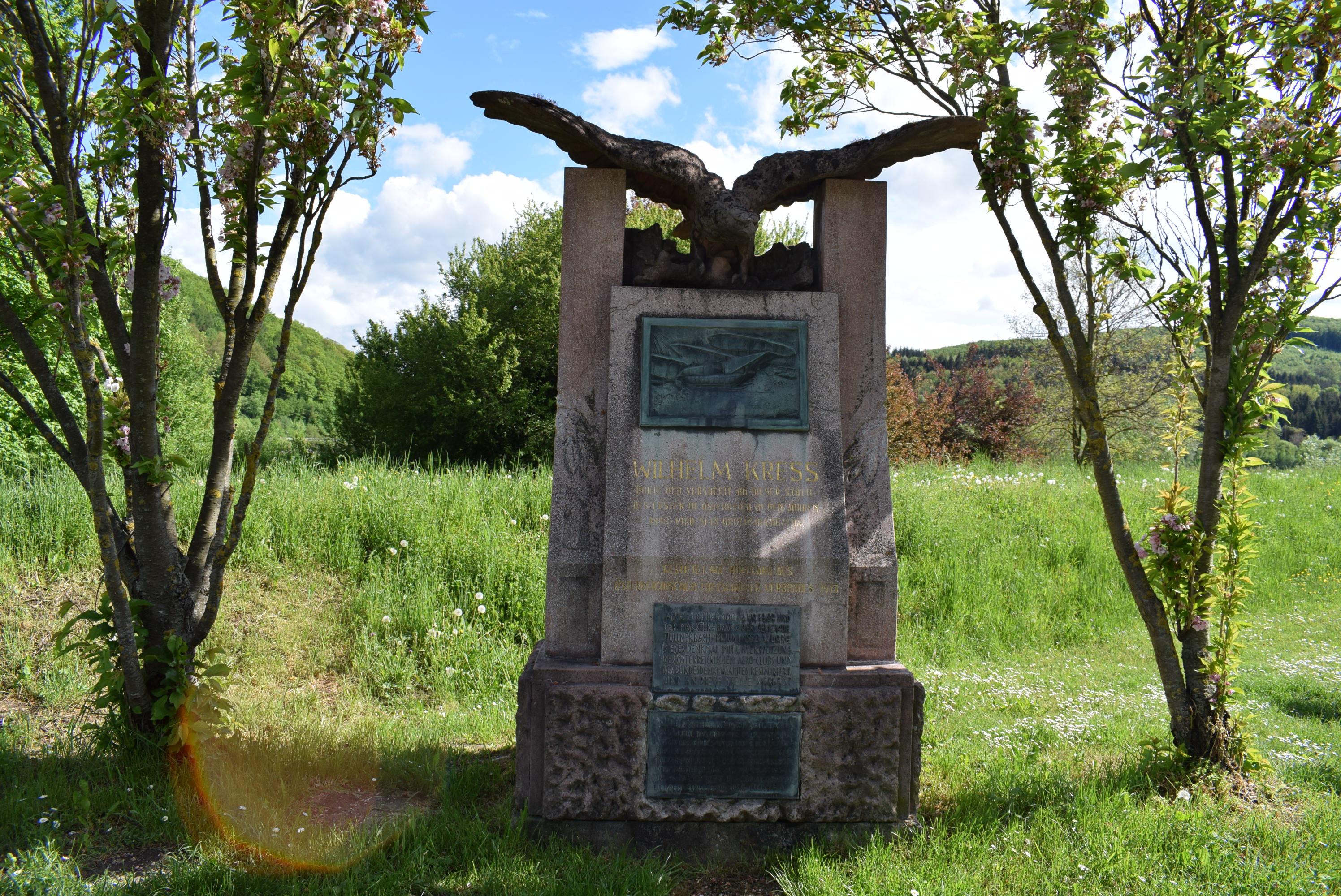 Au bord du lac, vous verrez un petit monument commémorant la première tentative de vol de Wilhelm Kress avec son « Drachenflieger », une sorte d’hydravion, qui eut lieu en 1901. L’hydravion finit malheureusement par couler mais fit de Wilhelm Kress (1836-1913) un des pionniers de l’aviation.
